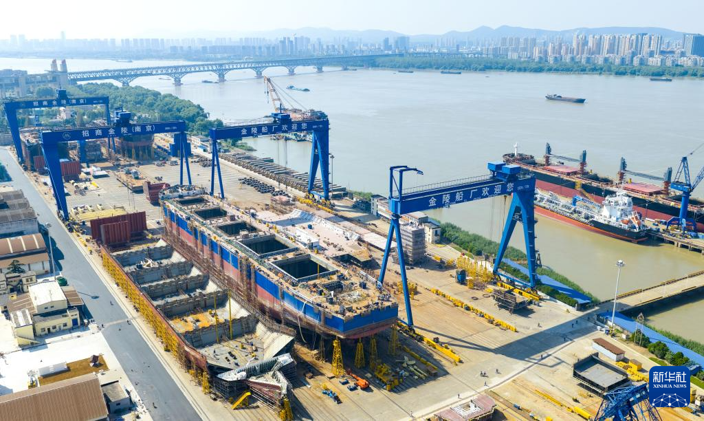 2025年10月9日,工人师傅在招商工业南京金陵船厂抓紧赶制船舶订单(无人机照片)。新华社发(杨素平摄)