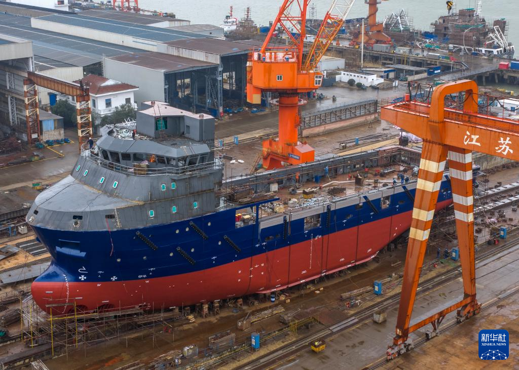 2026年2月2日在江苏省南通市崇川区船舶海工产业带拍摄的建造中的船舶(无人机照片)。新华社发(许丛军摄)