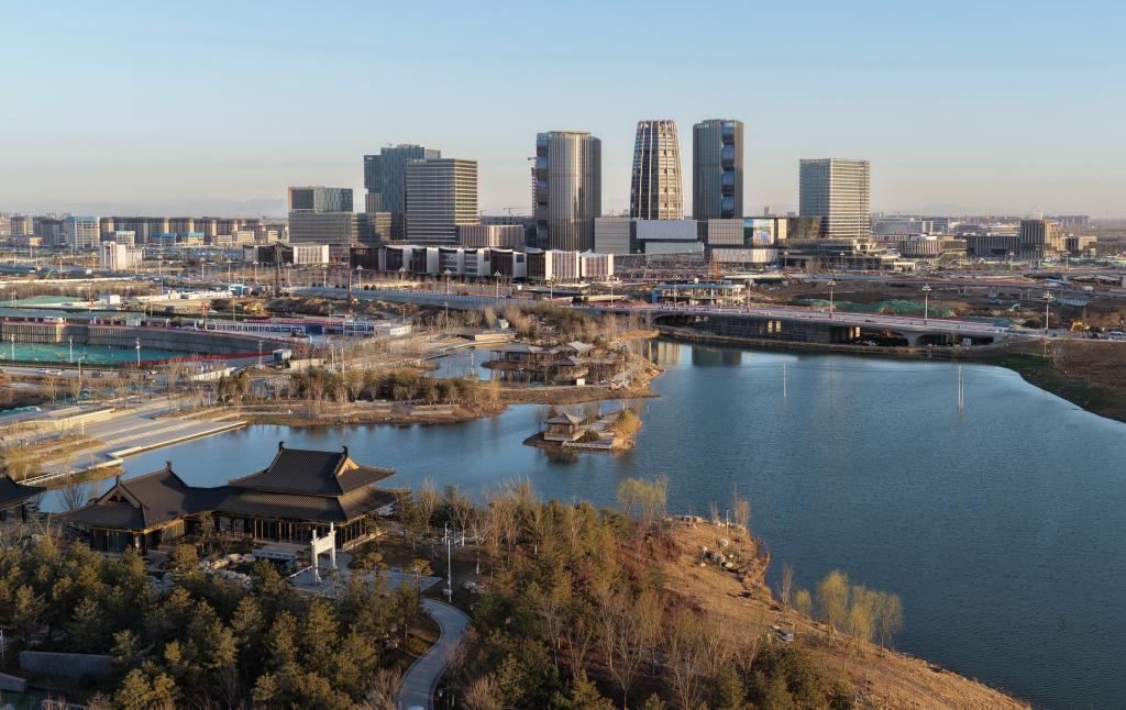 站在雄安启动区国贸中心楼顶环顾,城市核心地段的繁华景象清晰可见:3家央企总部已投入使用,5家央企总部项目建设有序推进;金融岛上,财富大厦双塔楼正装饰装修;中央绿谷铺展“水城共融”生态画卷……