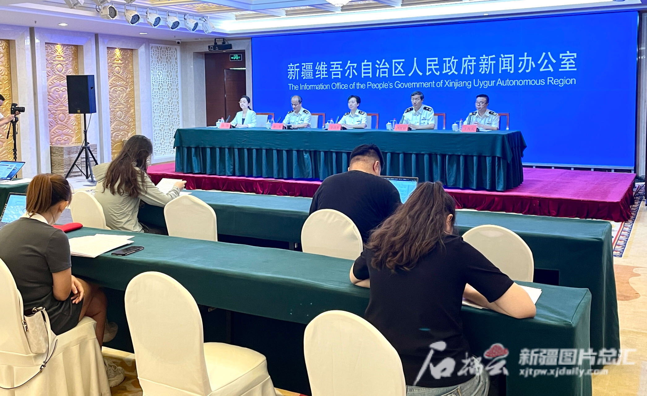 7月21日,自治区人民政府新闻办公室举行新闻发布会,发布上半年新疆外贸数据。石榴云/新疆日报记者 石鑫摄