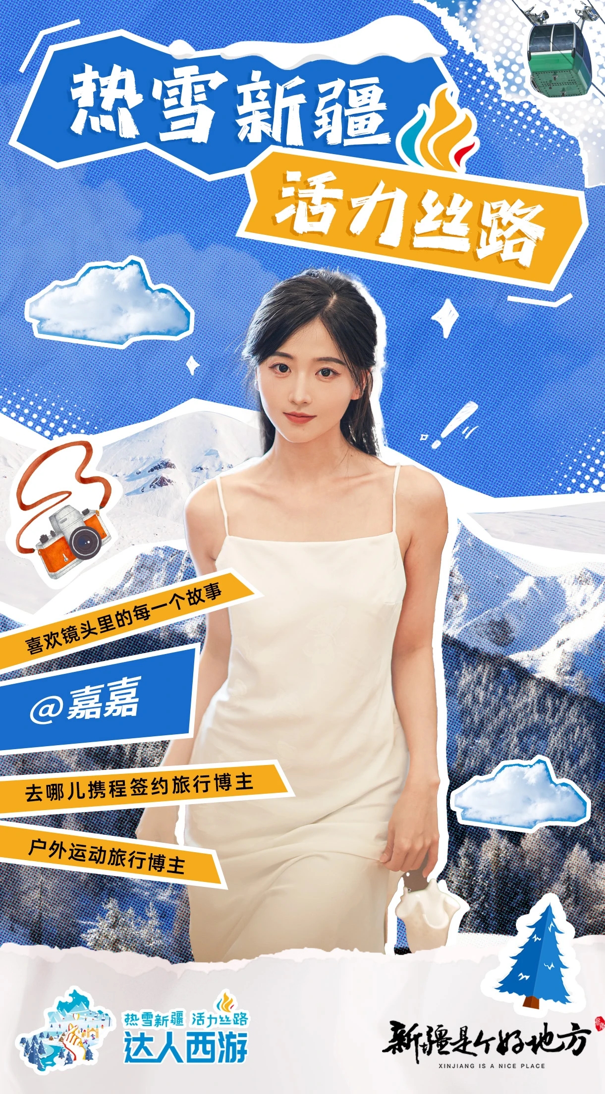 拥有220万粉丝的达人@嘉嘉已做好了去新疆滑雪的准备,“我的家乡总是四季如春,我早就想领略北国风光,想象着在将军山滑雪场驰骋的感觉,太让人激动了。”
