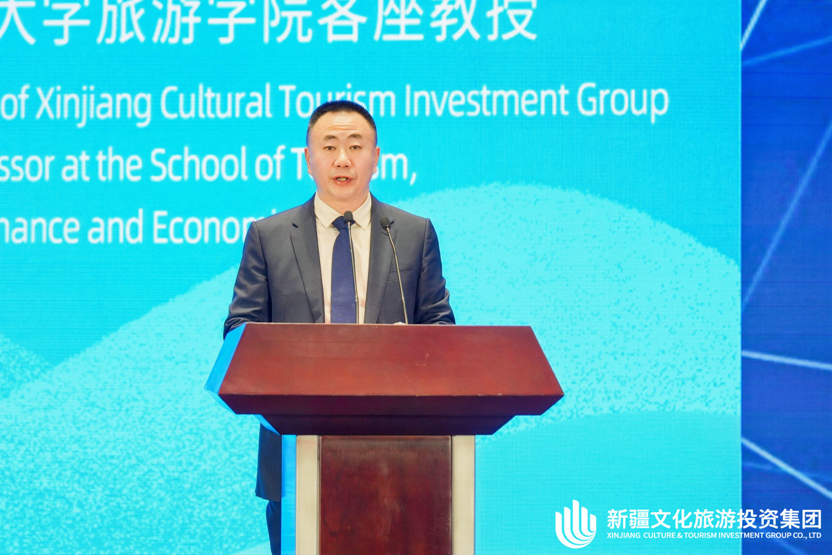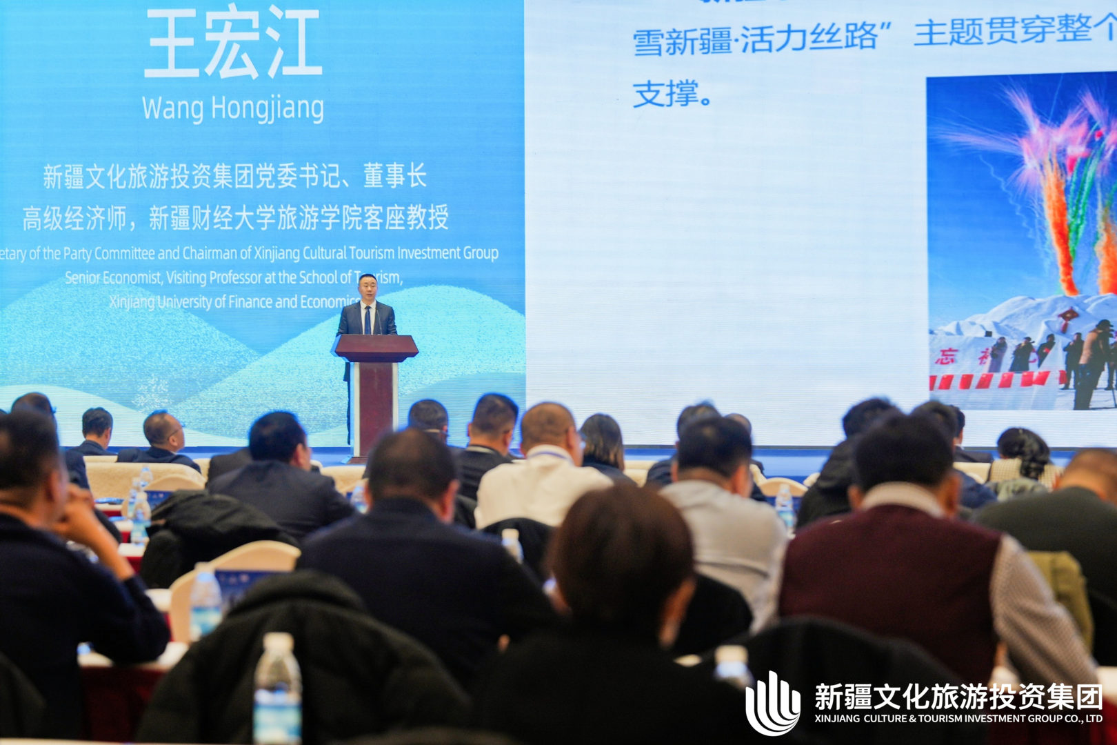 新疆文化旅游投资集团有限公司党委书记、董事长王宏江在论坛上演讲。 新疆文化旅游投资集团有限公司供图