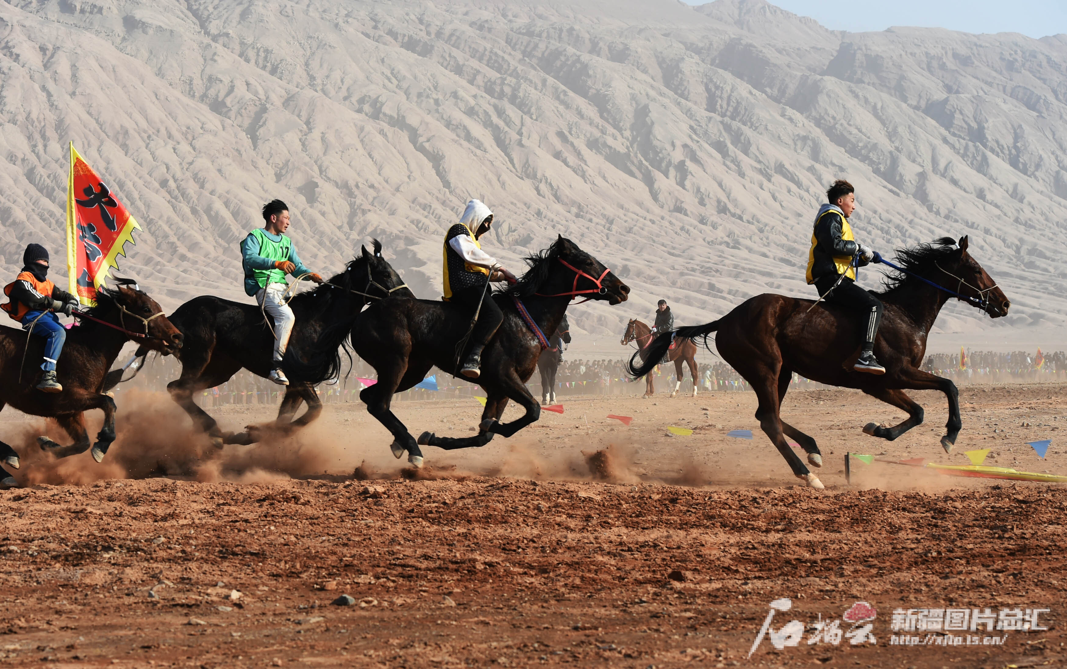1月27日,精彩的斗鸡、赛马、刁羊等群众性体育活动在国家4A级旅游景区——吐鲁番火焰山景区举行,吸引了众多游客前来观看。