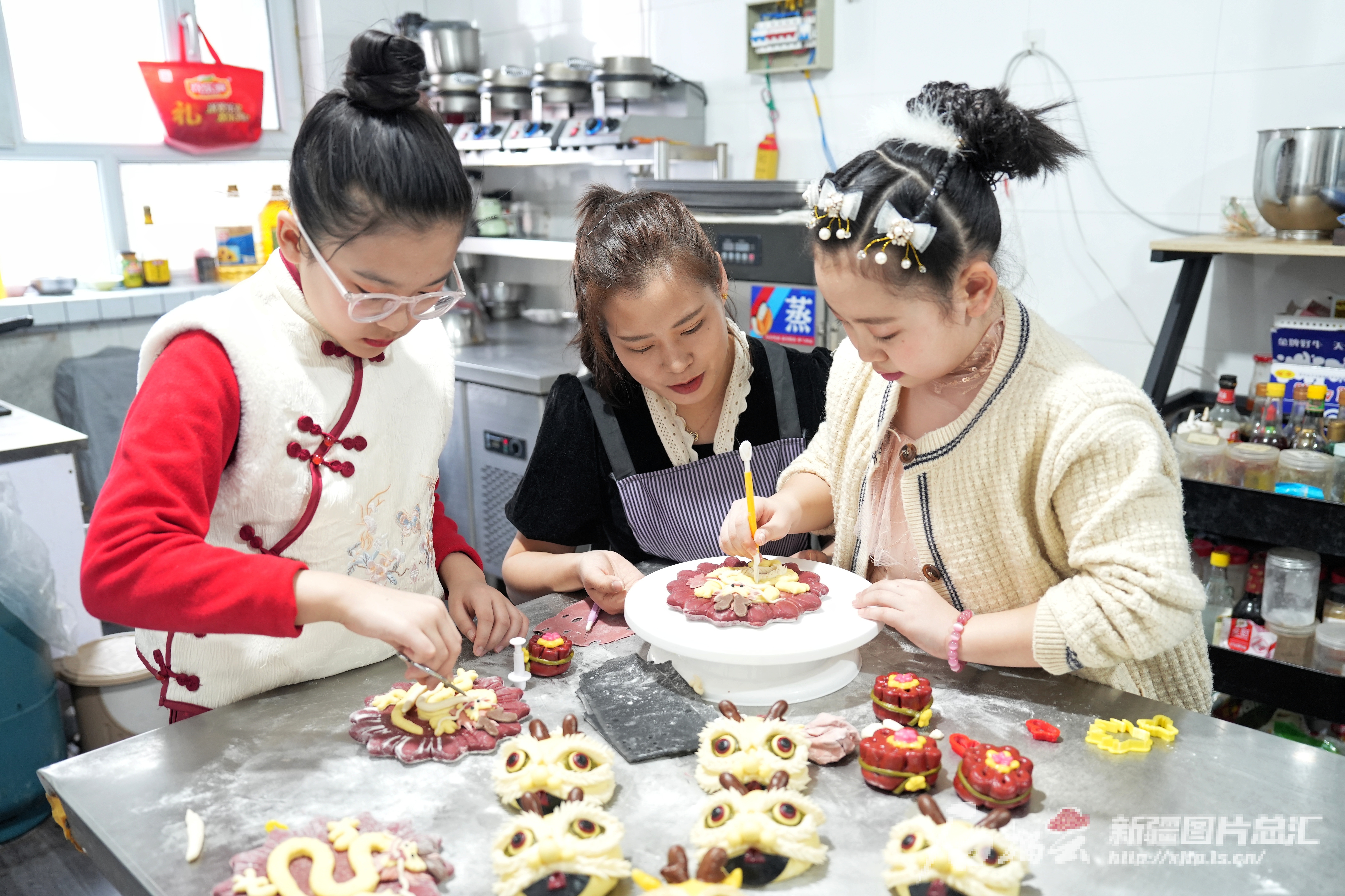 1月26日,社区干部和孩子们一起学习制作花馍。兰玲摄