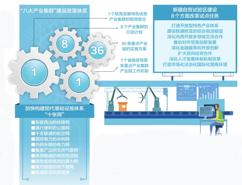 自治区政府工作报告提出,聚焦“八大产业集群”,积极构建具有新疆特色和优势的现代化产业体系。全疆上下紧锣密鼓、争先恐后加快推进新型工业化,高质量建设“八大产业集群”步伐坚定向前迈进。