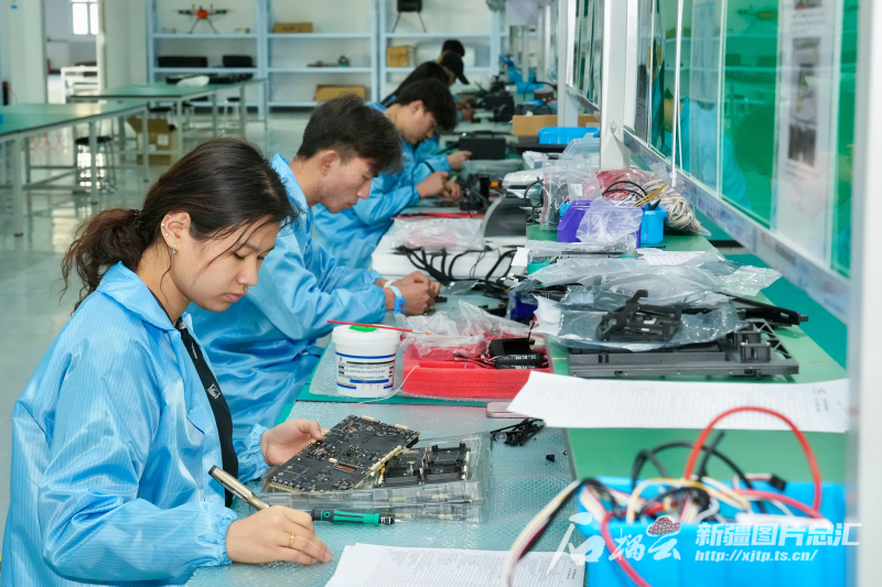3月19日,新疆科比特航空技术有限公司工作人员在生产线上加工无人机航电板。崔文娟摄