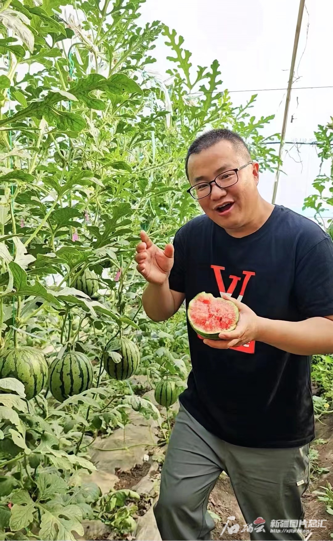 徒手剥皮吃 新疆最早成熟的西瓜上市了