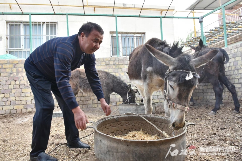 4月16日,吐尔逊·司马义给毛驴添加草料。刘佳 摄