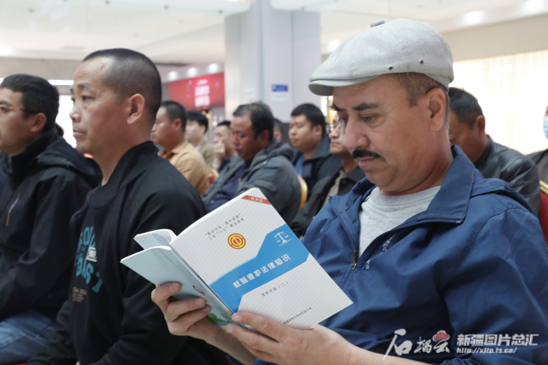 4月16日,一位货车司机正在阅读工会为他们准备的法律知识读本。石榴云/新疆日报记者 秦鹏摄
