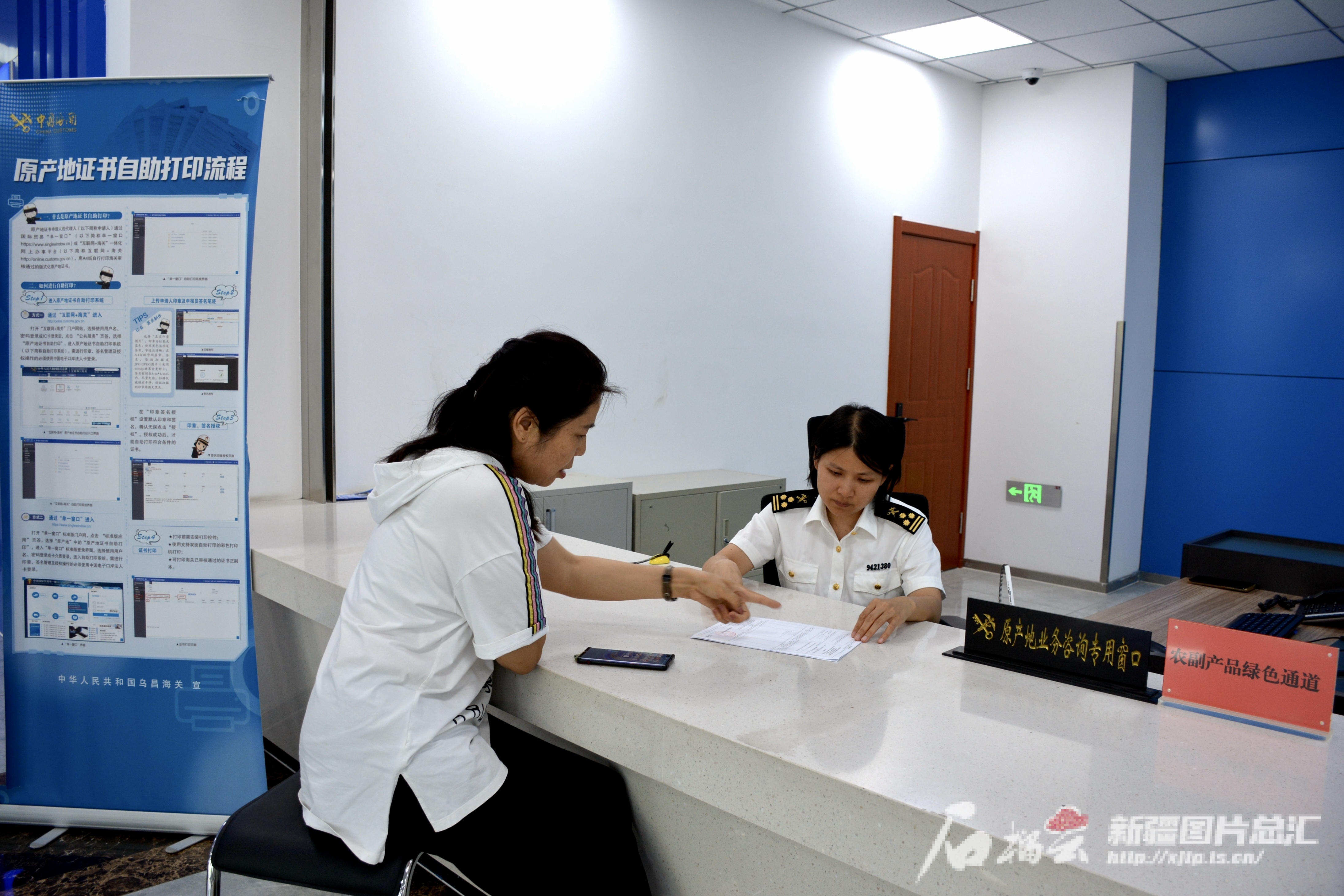 6月21日,乌昌海关关员向企业介绍原产地证书办理流程。 张婷婷 摄