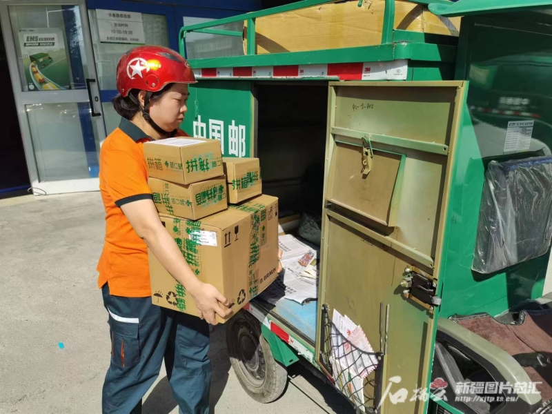 中国邮政集团有限公司乌鲁木齐市分公司快递员在装车。朱蕊秀 摄