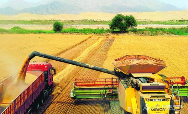 6月下旬,南疆广大地区小麦陆续成熟,进入收获季,人们抢抓农时抢收小麦,确保丰产丰收。