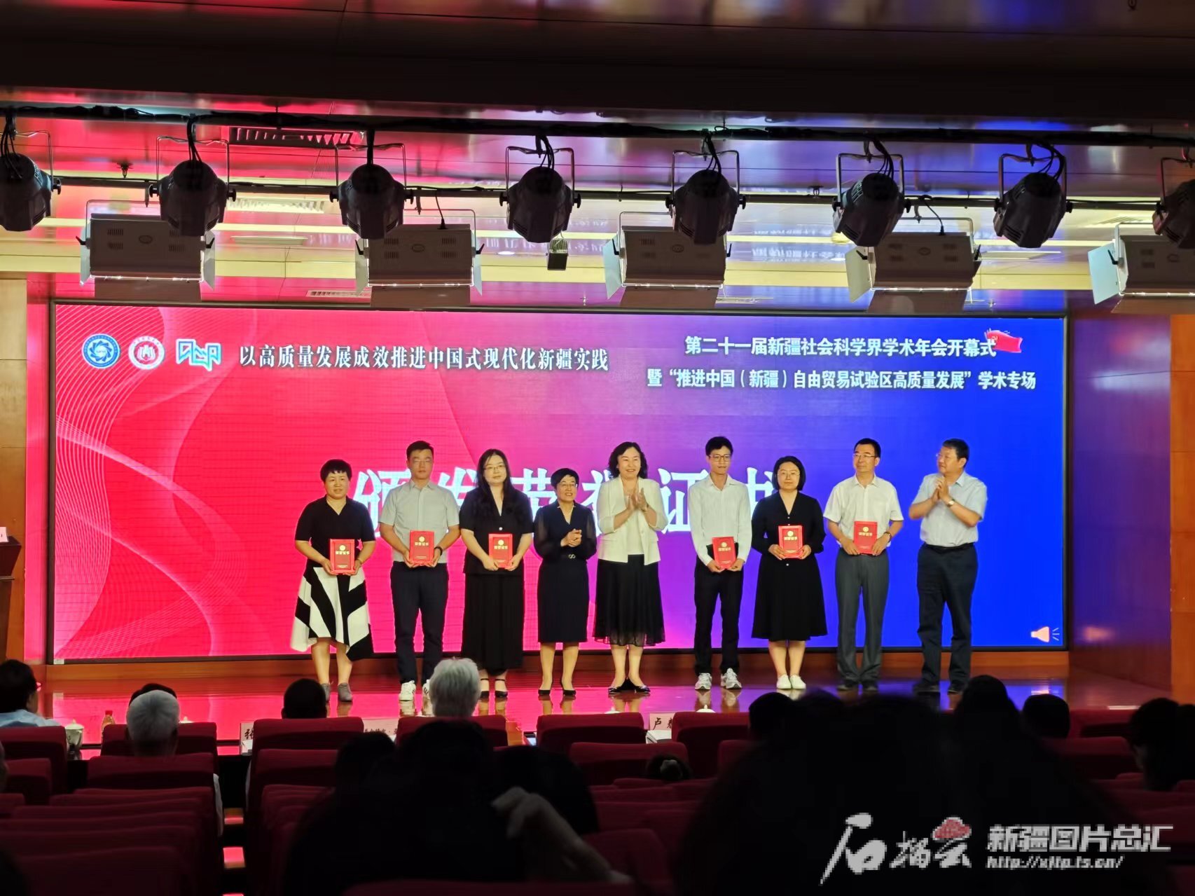 7月15日,第二十一届新疆社会科学界学术年会开幕。图为本次学术年会为“推进中国(新疆)自由贸易试验区高质量发展”学术专场入选论文作者颁发荣誉证书。石榴云/新疆日报记者 高娃摄