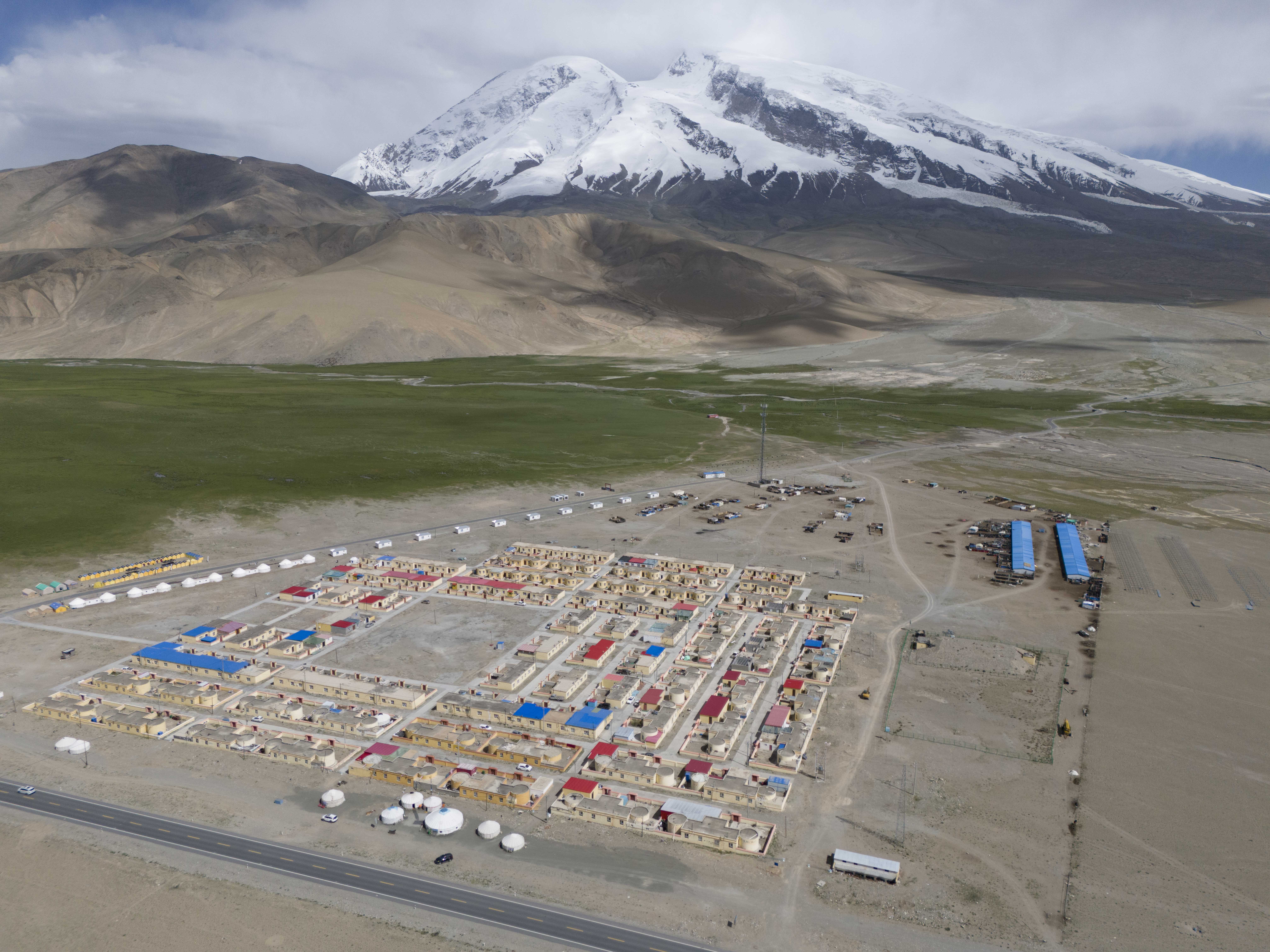 新疆慕士塔格峰脚下的阿克陶县布伦口乡苏巴什村三小队(7月2日摄,无人机照片)。新华社记者 胡虎虎 摄
