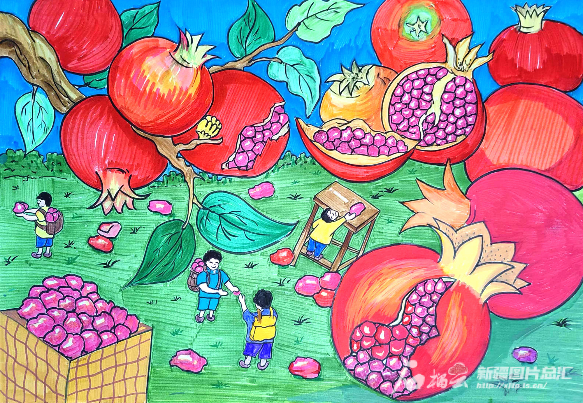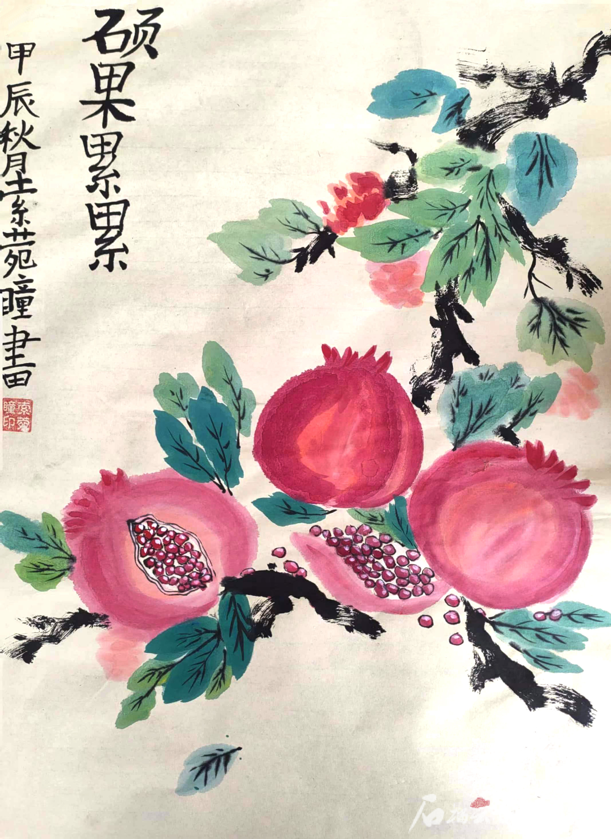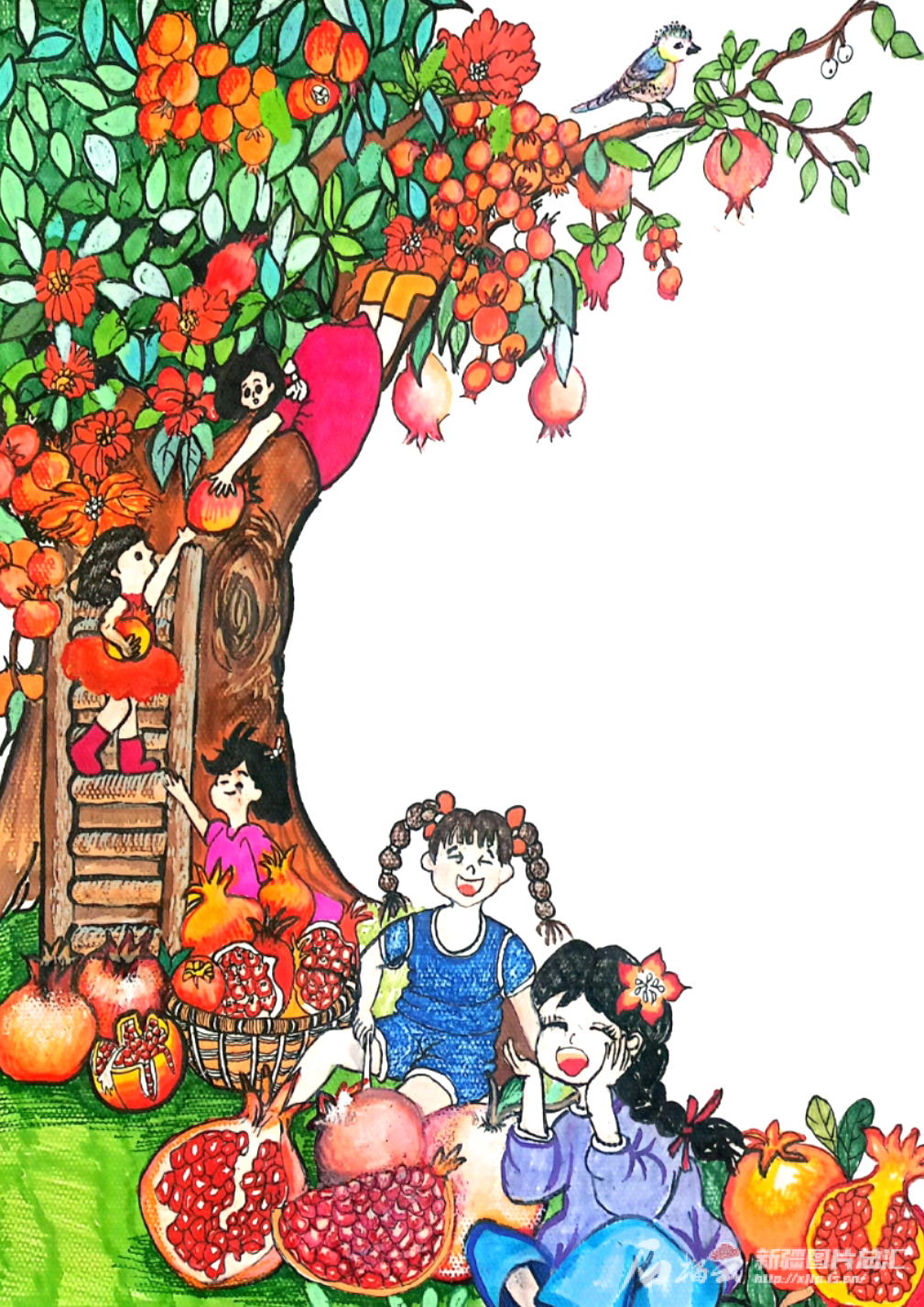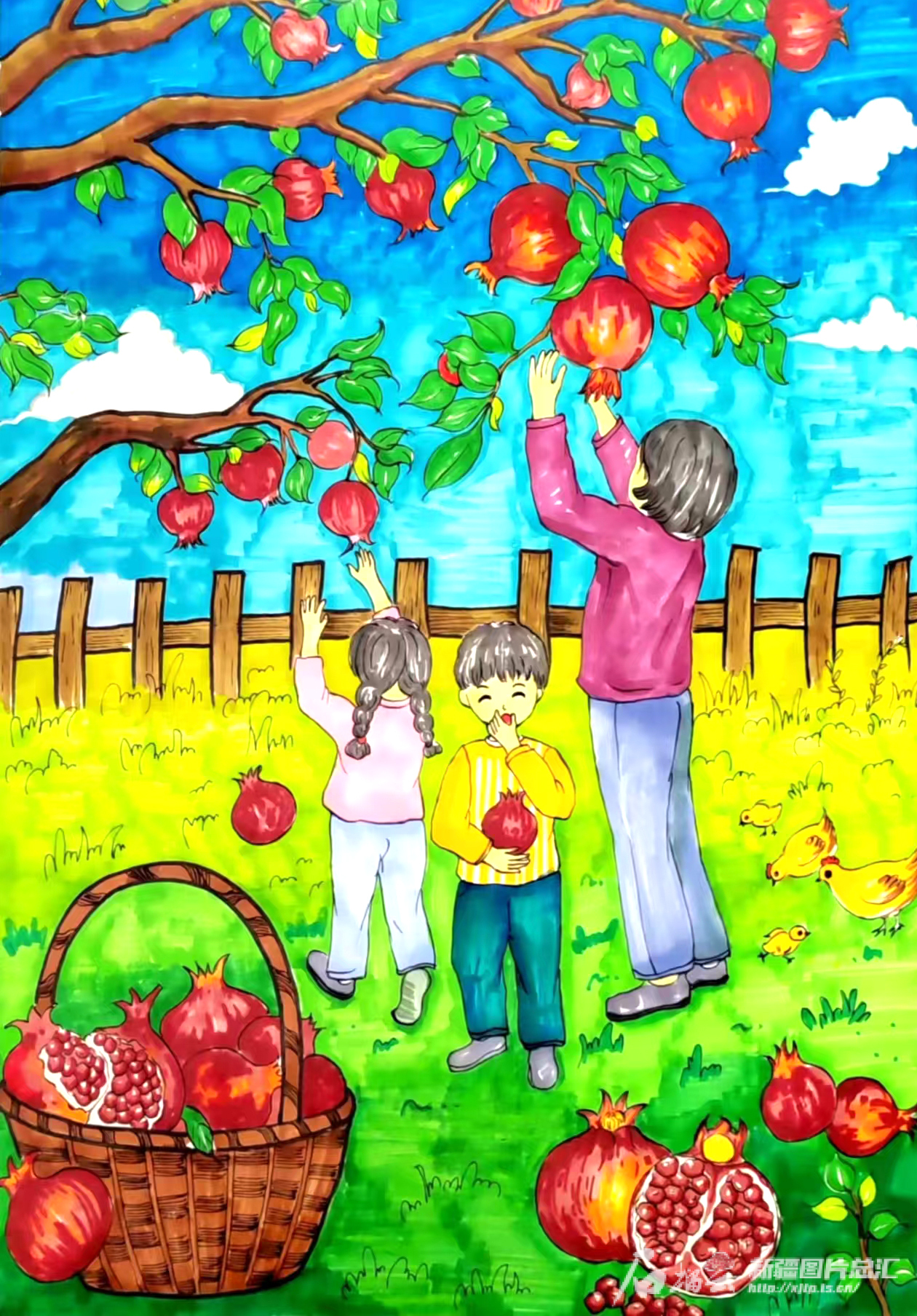 榴花开欲然丨“童绘新疆”小作者画石榴送祝福