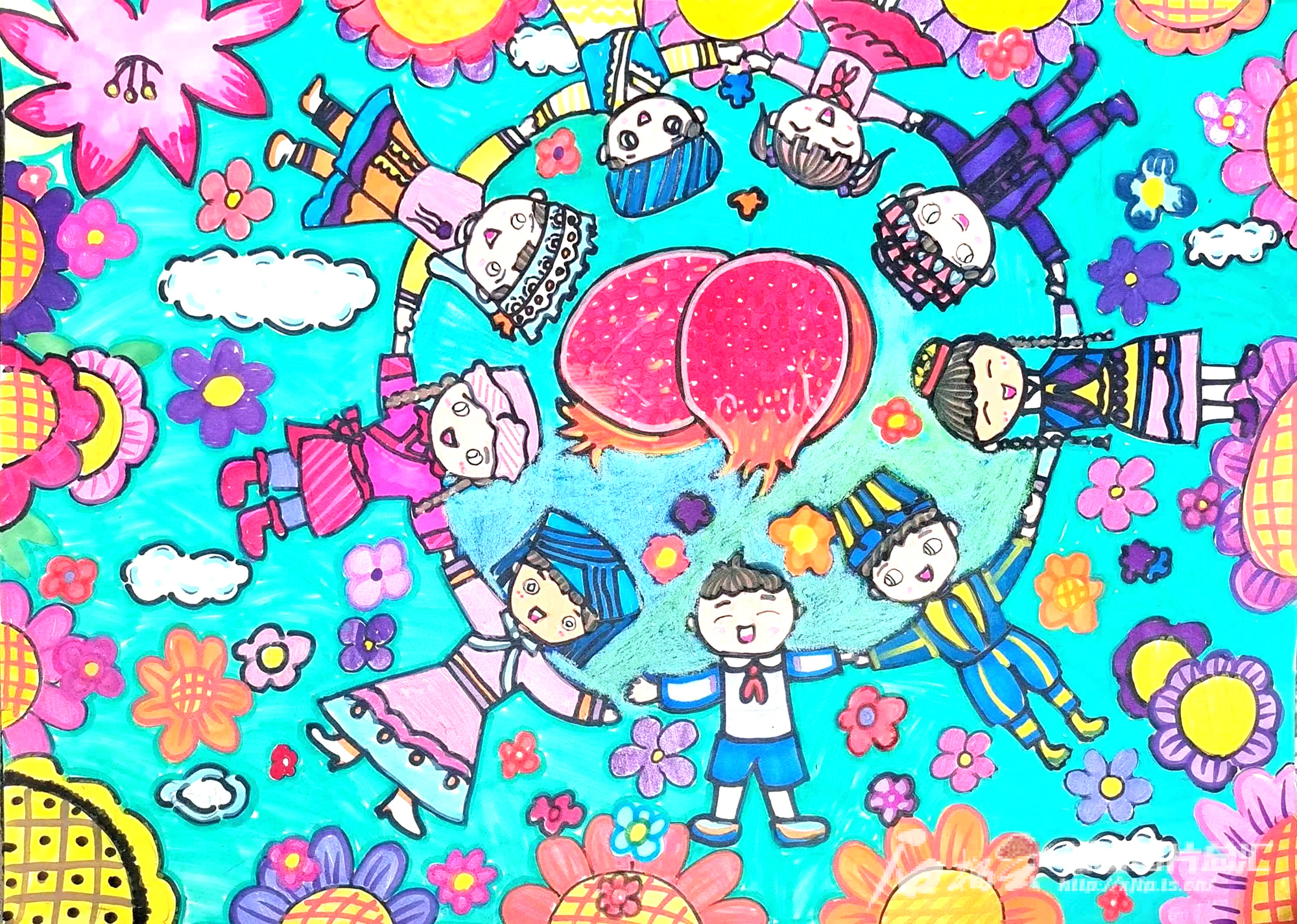 《石榴籽一家亲》(作者:新疆塔城地区沙湾市第四小学六年级四班 张嘉梓萱;辅导教师:尹国丽)