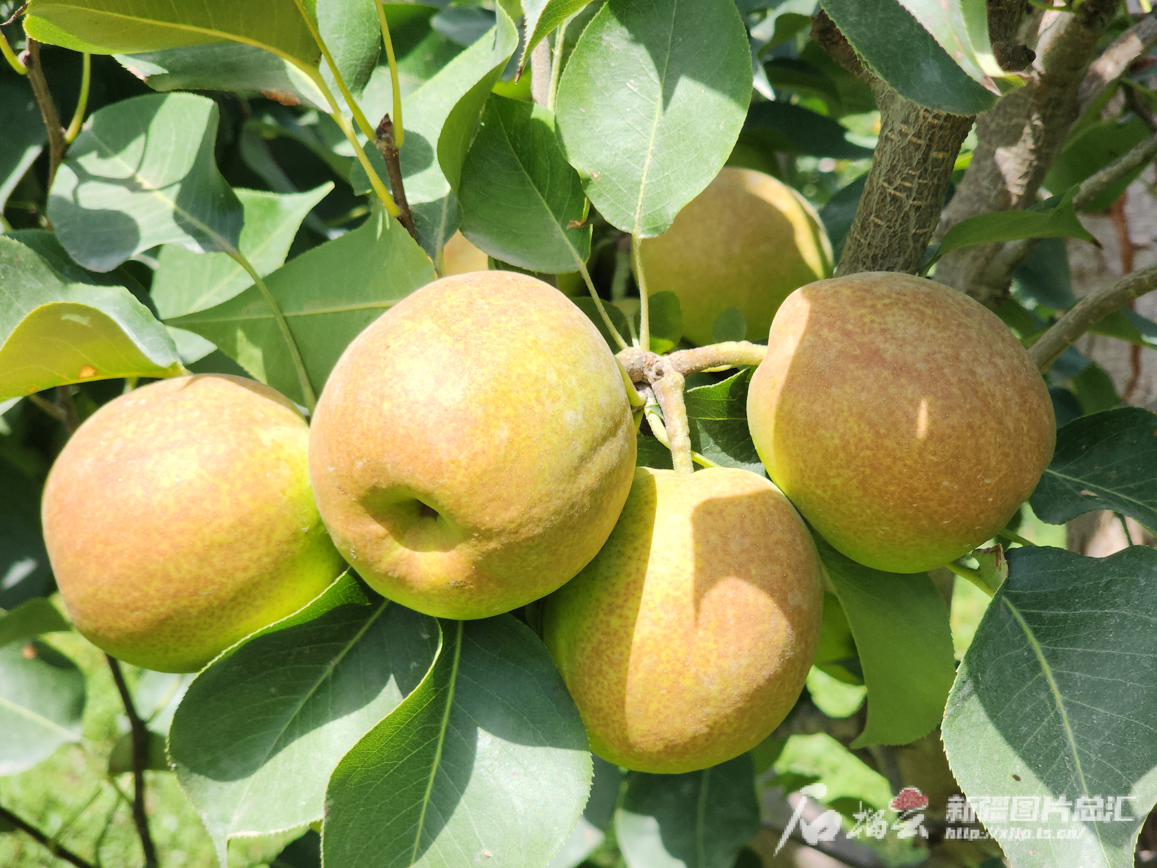 8月26日,在库尔勒市阿瓦提乡香梨园,翠绿的树叶间挂满了沉甸甸的果实。库尔勒市融媒体中心提供。