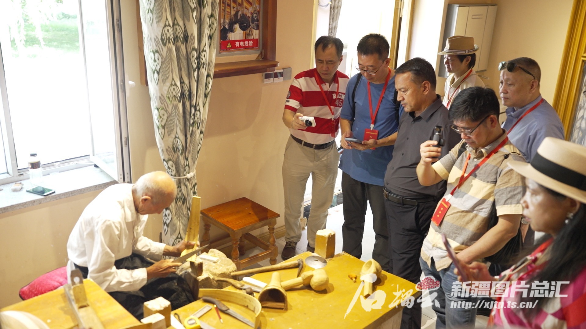 采访团一行访问中国新疆民族乐器村。李明非摄