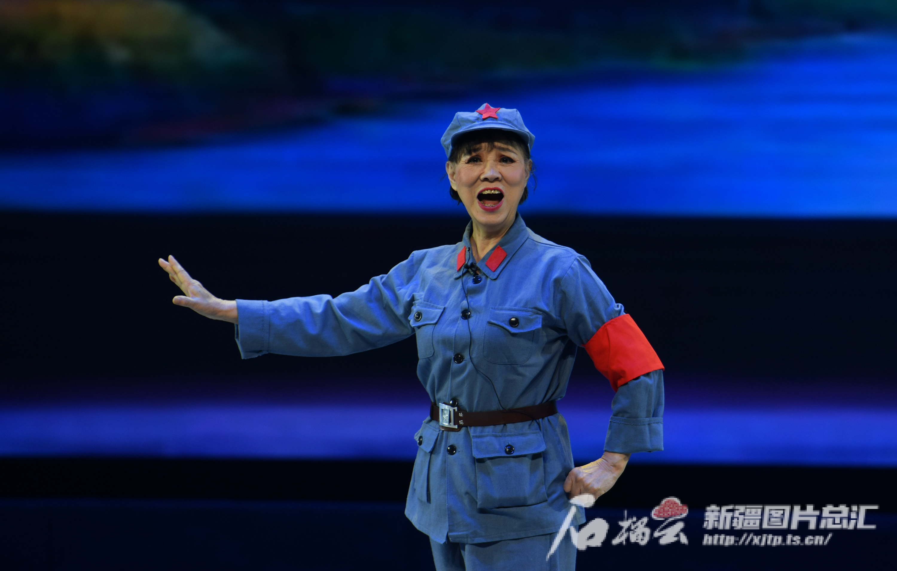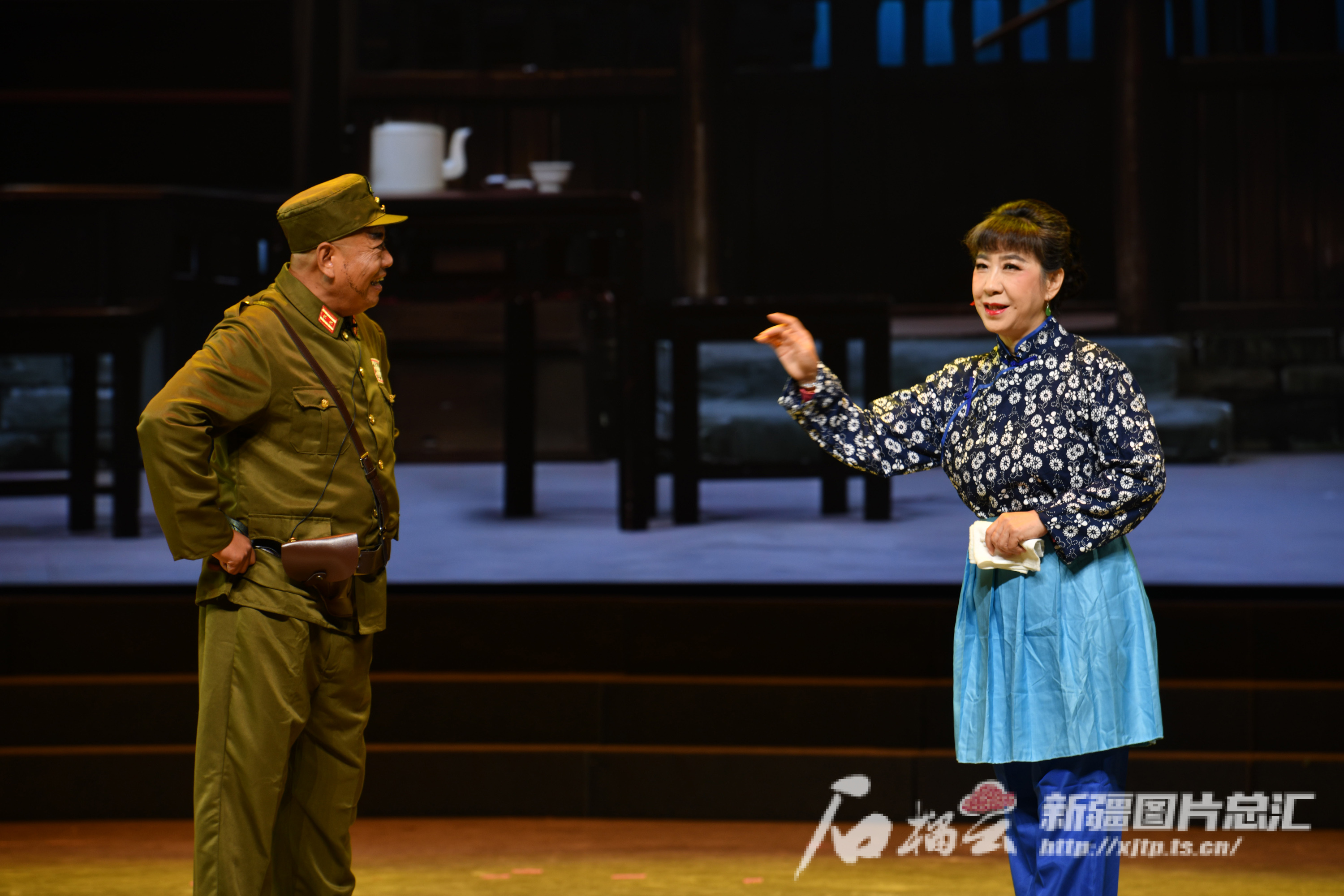 王晓华、弓志新、李天智表演《沙家浜》。石榴云/新疆日报记者 张新军摄