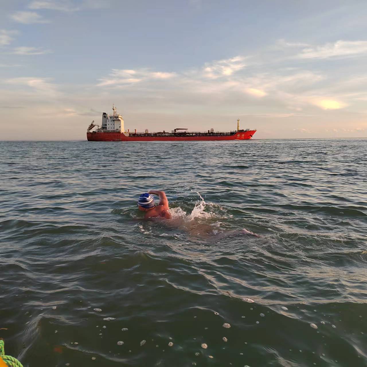 前20公里他游得很平稳,几乎没风,在月色变淡太阳将要升起的时候,他还边游边享受着美景,“像要融入大自然的感觉,感觉自己非常渺小,惬意又宁静。”