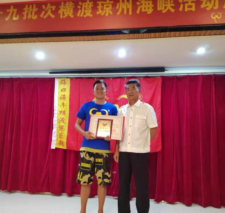 9月22日,朱家骅领到成功横渡琼州海峡的横渡证书。 朱慈新摄