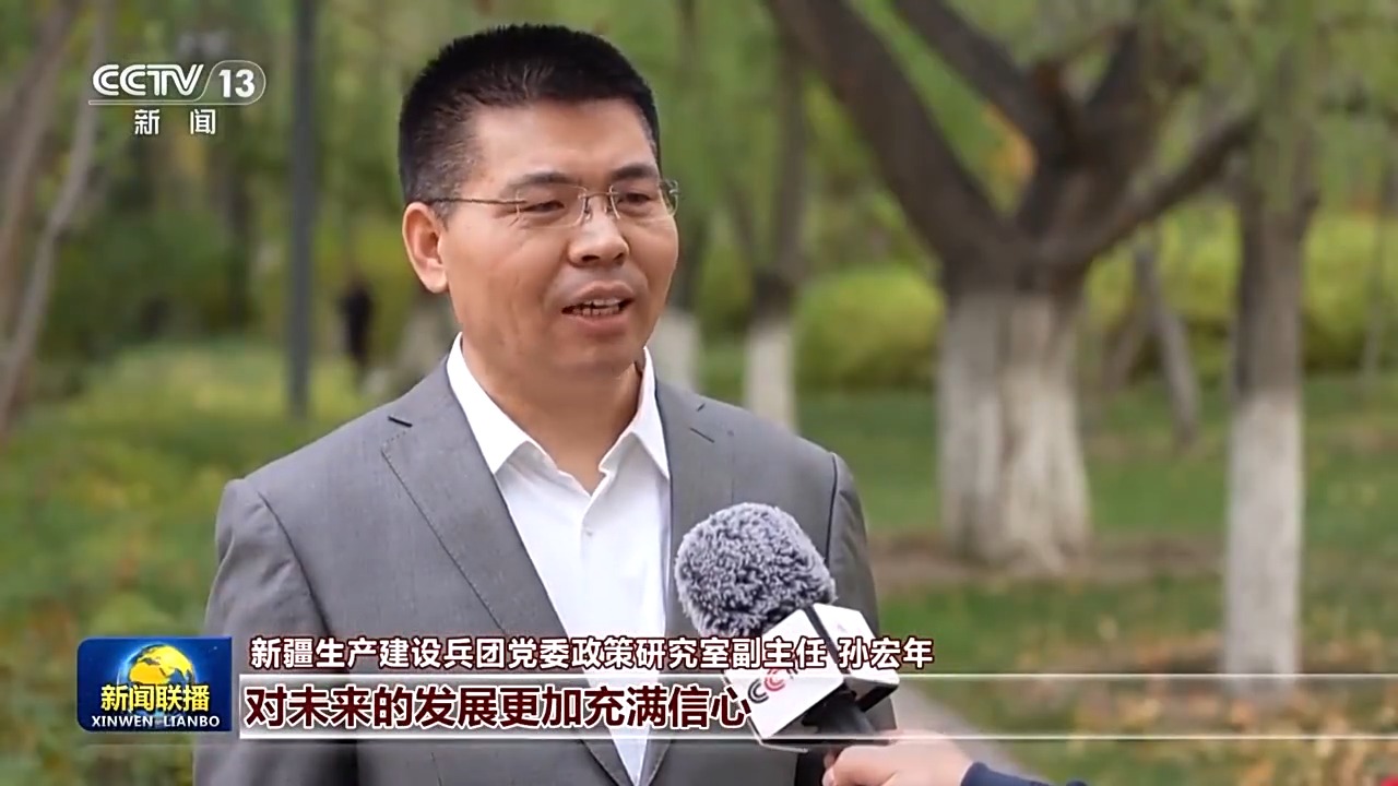 新疆生产建设兵团党委政策研究室副主任 孙宏年:习近平总书记多次就新疆和兵团工作发表重要讲话,作出重要指示批示,形成了新时代党的治疆方略。兵团生产总值2023年增加到了3696.58亿元,居民人均可支配收入首次突破4万元,经济发展实现了大跨越。兵团各族干部群众都十分振奋,对未来的发展更加充满信心。