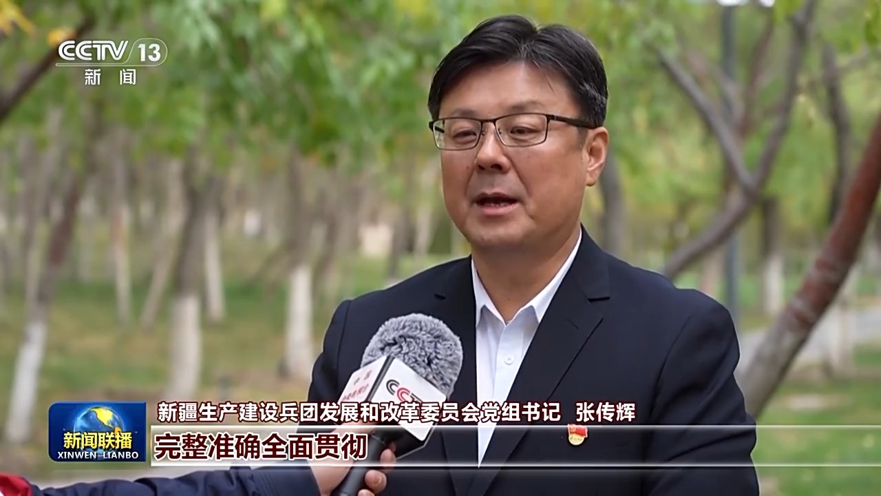 新疆生产建设兵团发展和改革委员会党组书记 张传辉:我们将牢记总书记的殷切嘱托,完整准确全面贯彻新时代党的治疆方略和党中央对兵团的定位要求,紧紧地抓住对口援疆、西部大开发、共建“一带一路”、新疆自贸试验区这些建设的历史机遇,着力构建具有兵团特色的现代化产业体系,在中国式现代化当中,贡献兵团的新担当、新作为。