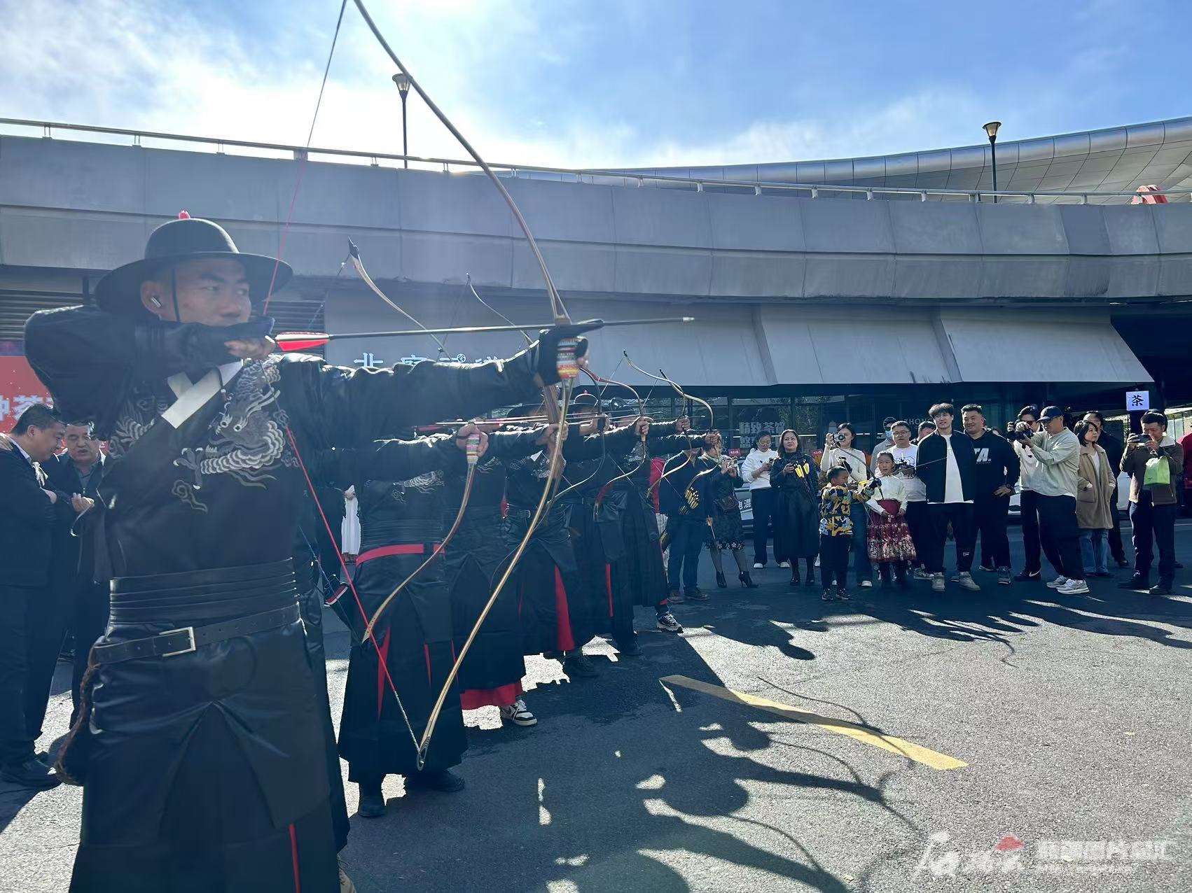 10月19日,乌鲁木齐奥林匹克体育中心北庭弓道射箭馆外,射箭爱好者正在为市民和游客展示射箭。