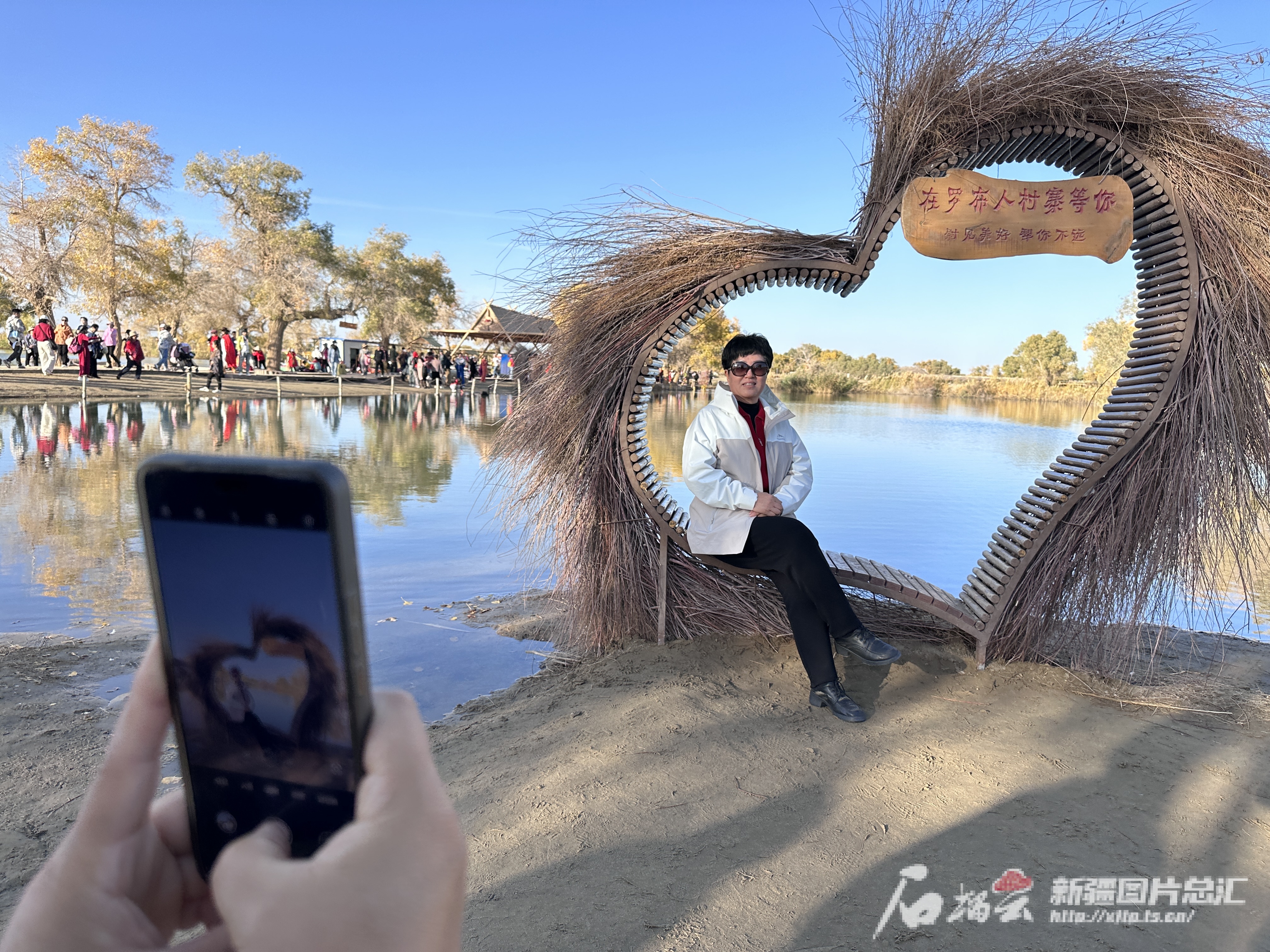 10月19日,游客在罗布人村寨景区打卡拍照。天山网-新疆日报记者 杜建辉摄