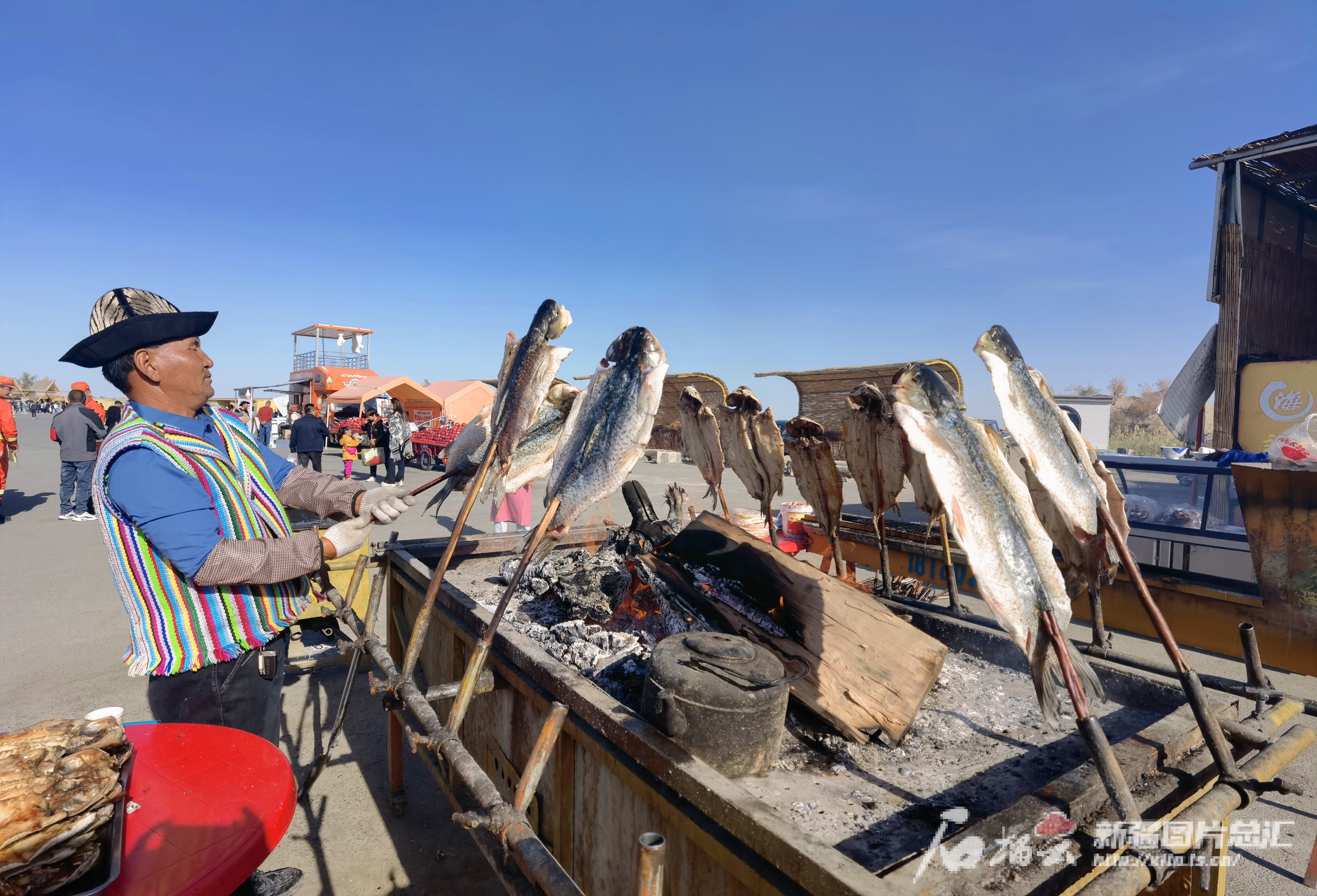 10月19日,罗布人村寨景区内,商户正在加工鲜美烤鱼。天山网-新疆日报记者 杜建辉摄