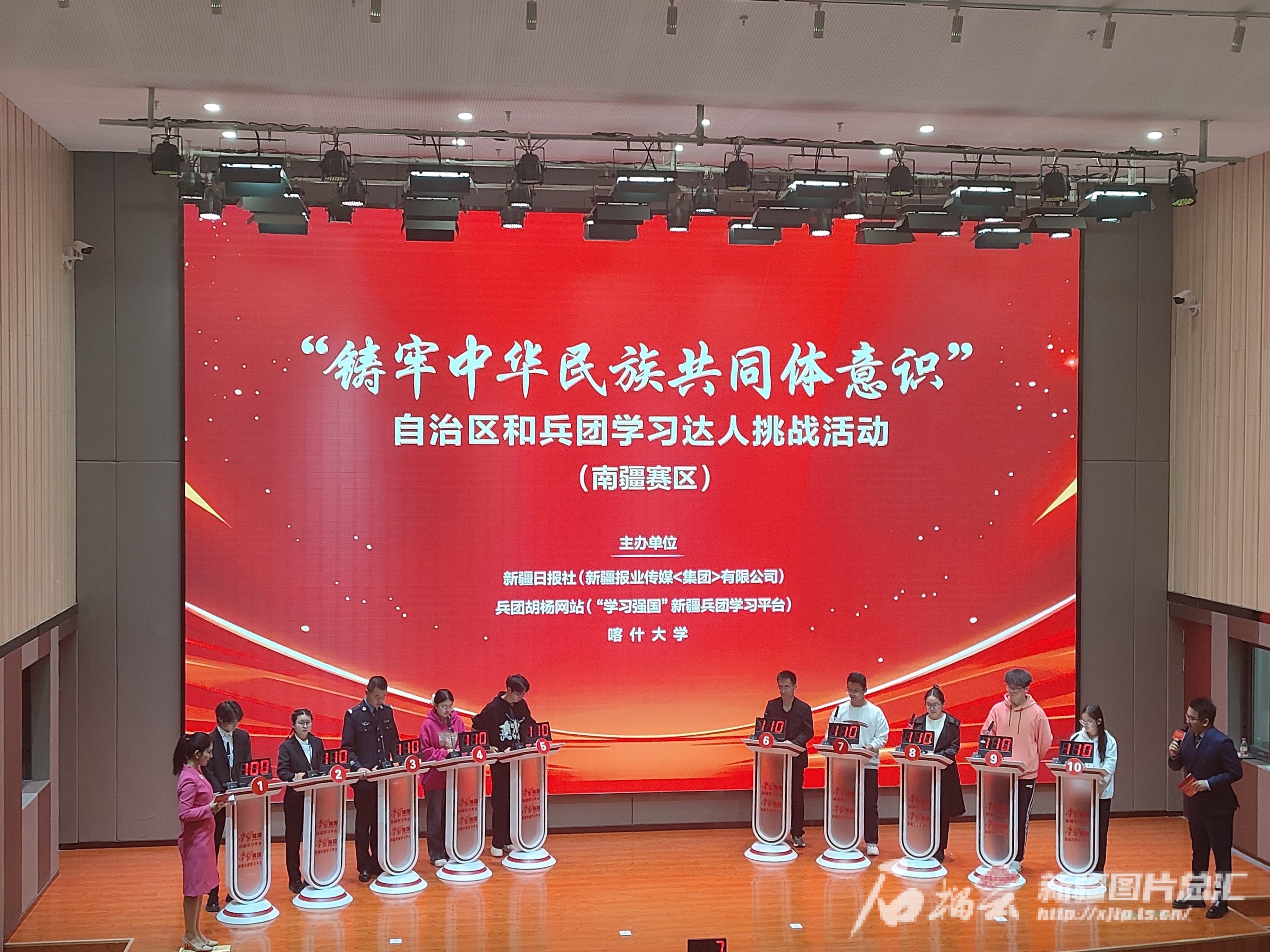 “给2号选手加20分,4号选手减20分。各位选手不要紧张,注意抢答时间!”10月25日,“铸牢中华民族共同体意识”自治区和兵团学习达人挑战活动(南疆赛区)在喀什大学新泉校区图书馆报告厅火热进行。