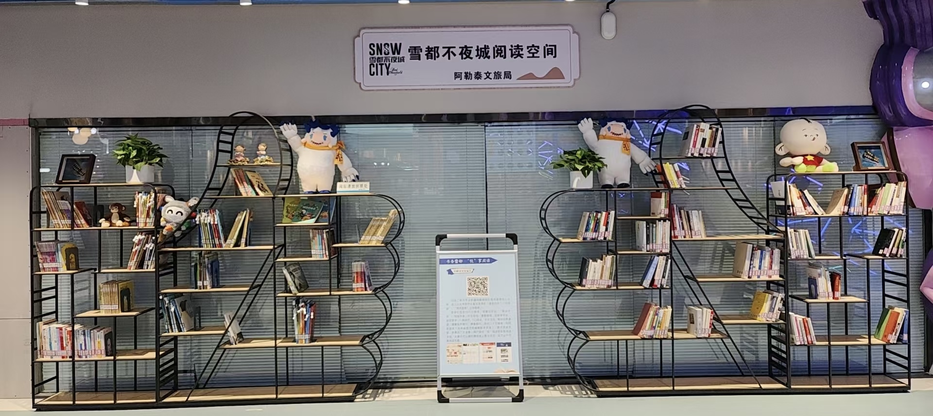 阿勒泰市图书馆在阿勒泰市雪都不夜城设立的流动图书点。(资料图)