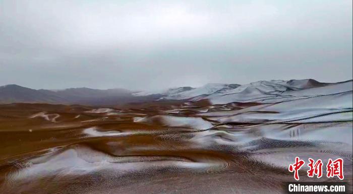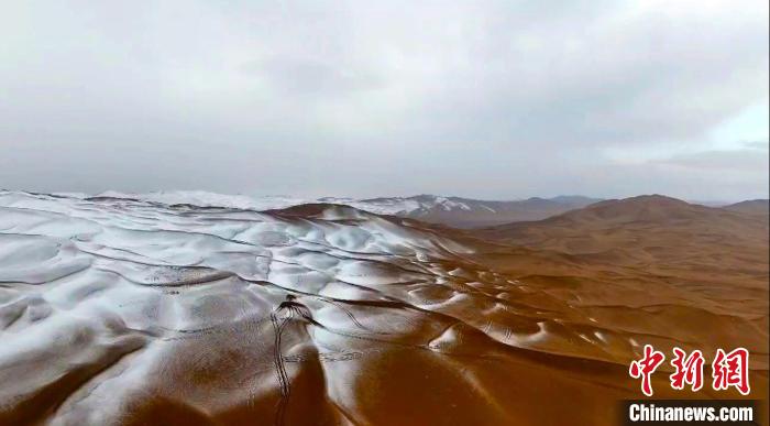 近日,新疆鄯善县库木塔格沙漠景区迎来降雪,雪后的沙漠银装素裹,洁白的雪覆盖在连绵起伏的沙丘之上,与浩瀚黄沙相互映衬,勾勒出一幅绝美的大漠雪景图。张帆 摄