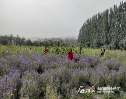 在皮山县桑株镇库木艾格勒村,农民正在采收香青兰子(资料图)。新疆西帕中药材有限公司供图