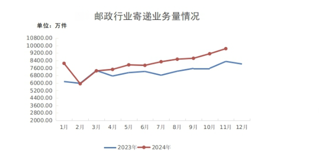 数据显示,1-11月,新疆邮政行业寄递业务量完成88732.35万件,同比增长13.81%;邮政行业业务收入(不包括邮政储蓄银行直接营业收入)完成92.69亿元,同比增长11.49%。其中,快递业务量完成40844.29万件,同比增长38.38%;快递业务收入完成66.40亿元,同比增长15.63%。