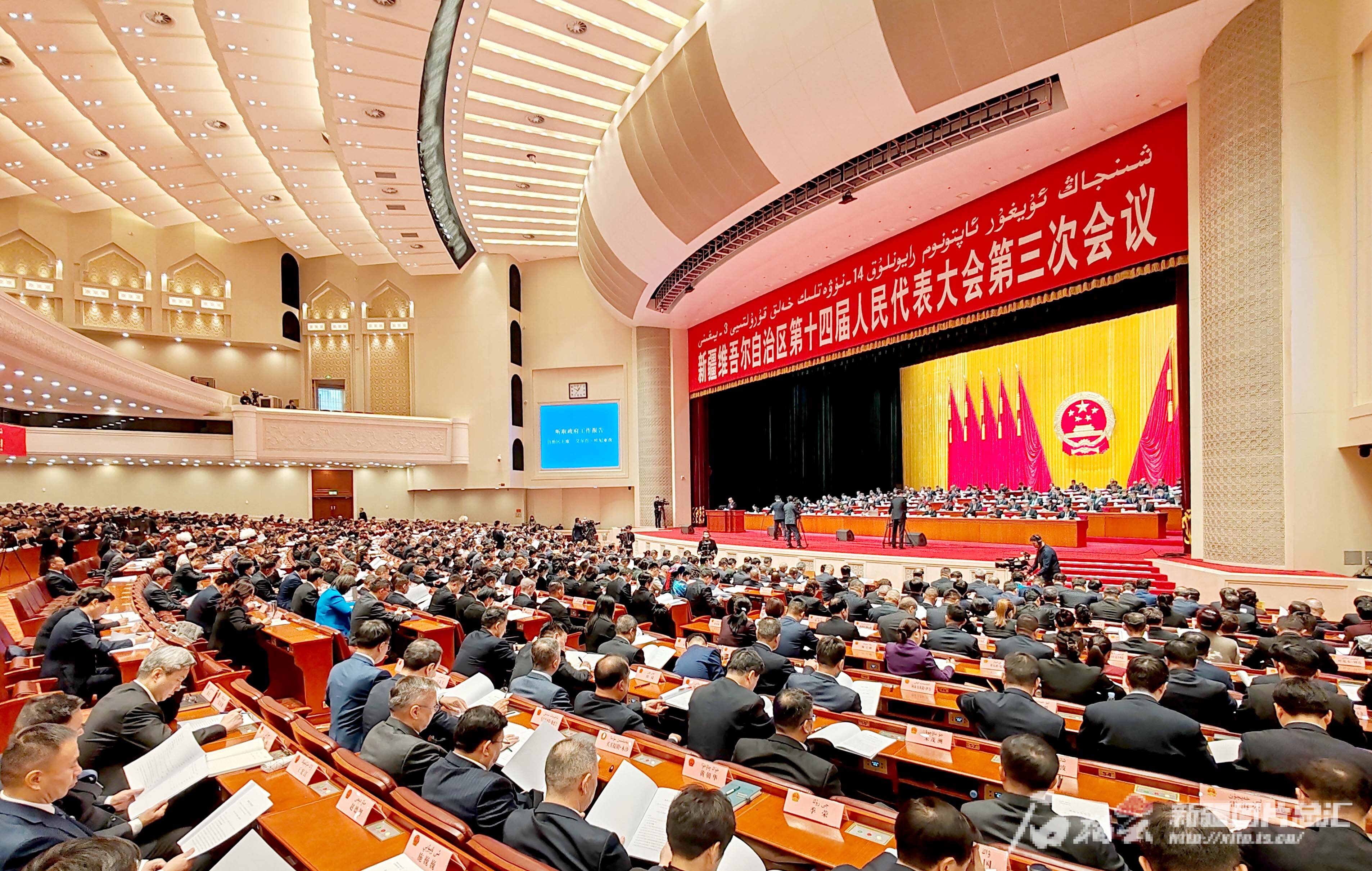 1月19日,新疆维吾尔自治区第十四届人民代表大会第三次会议在新疆人民会堂开幕。自治区主席艾尔肯·吐尼亚孜作政府工作报告。天山网-新疆日报记者 崔志坚摄