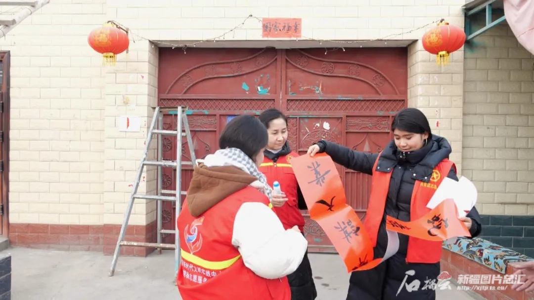 1月26日,沙雅县古勒巴格镇音其开村处处弥漫着喜庆与温馨的气息,村干部和返乡大学生正在将一副副寓意吉祥的春联、一张张喜气洋洋的“福”字和一个个红红火火的大灯笼,化作最真挚的新春祝福送到群众手中。