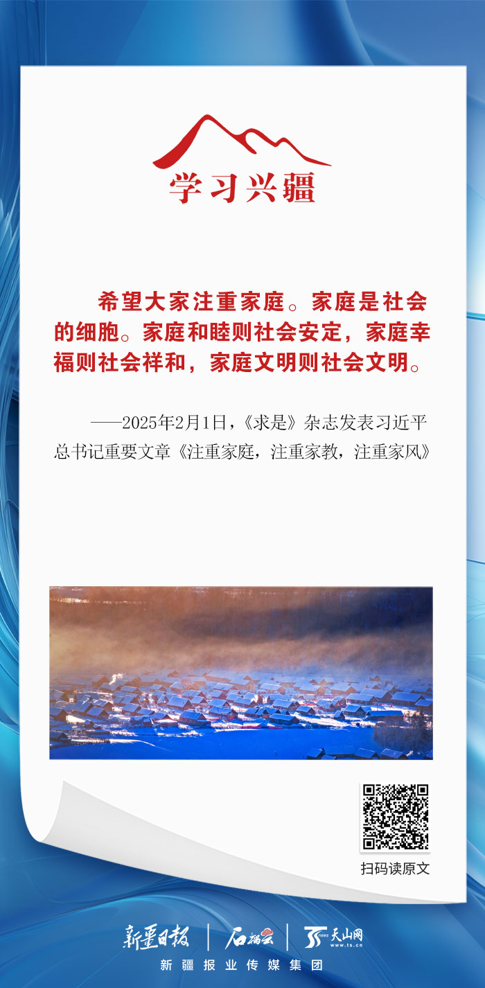 学习兴疆|家庭和睦则社会安定,家庭幸福则社会祥和,家庭文明则社会文明