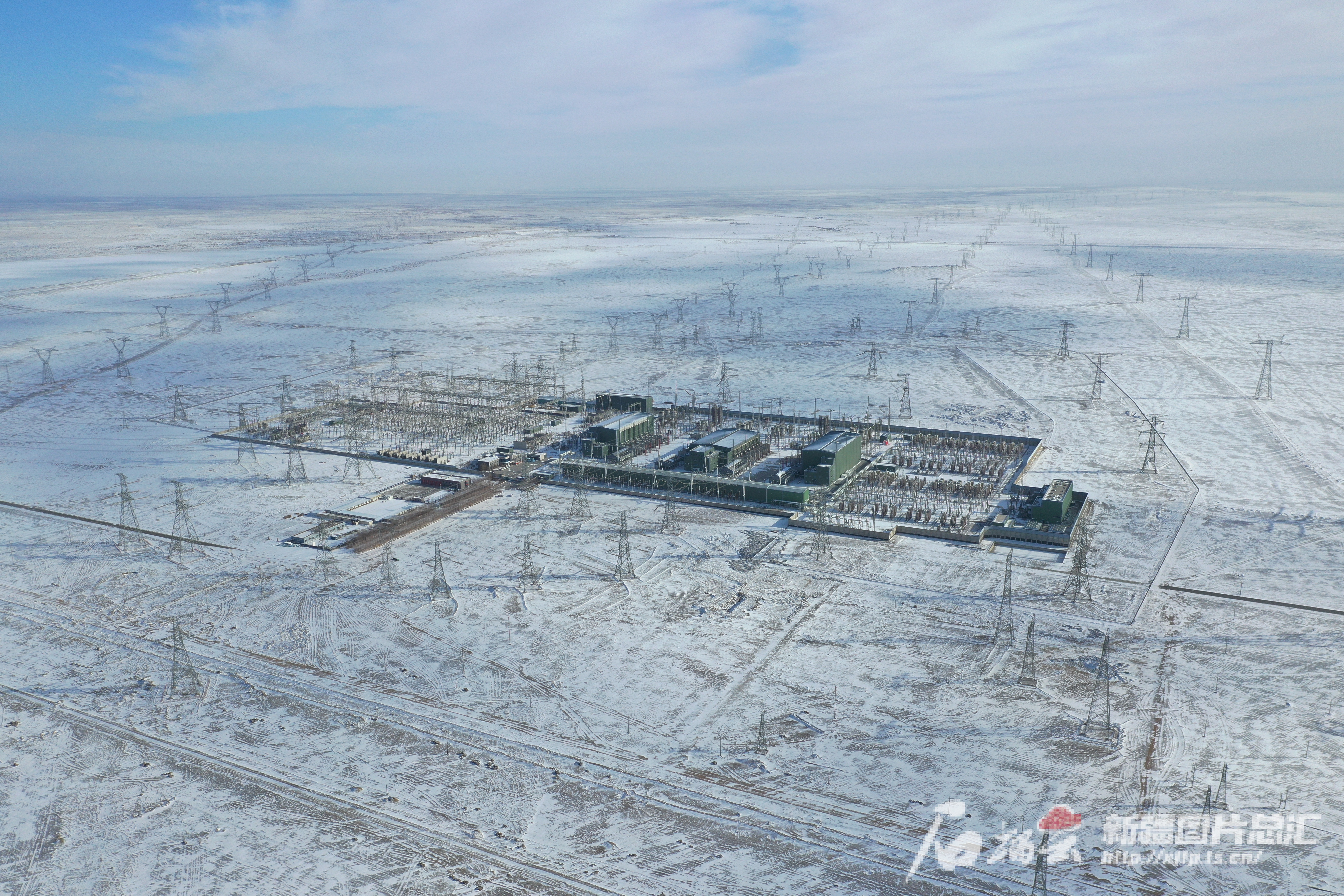 2月4日拍摄的哈密南—郑州±800千伏特高压直流输电工程天山换流站全貌。郭子毅摄