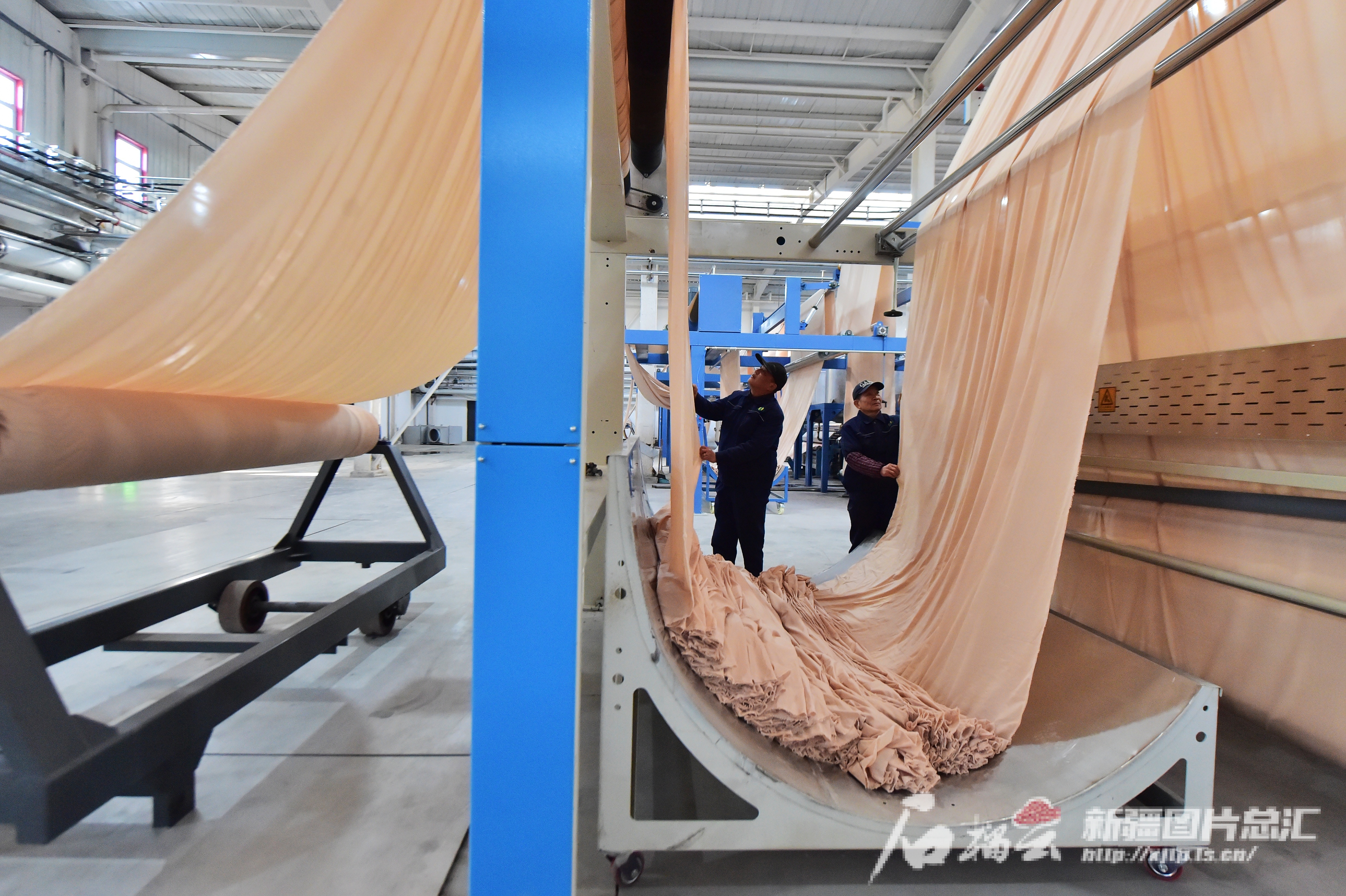 2月18日,新疆德利家纺印染科技有限公司员工在检查产品质量。