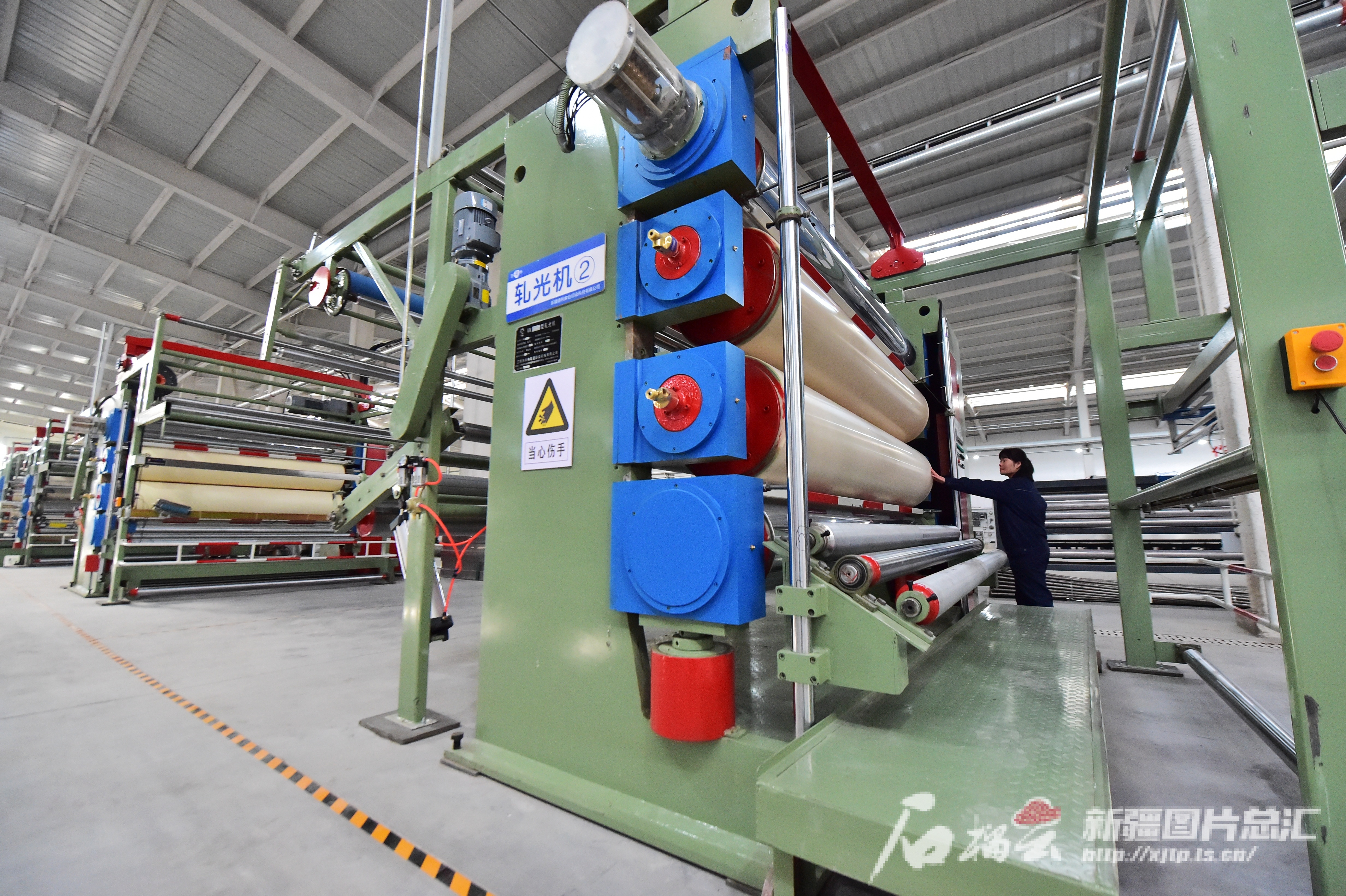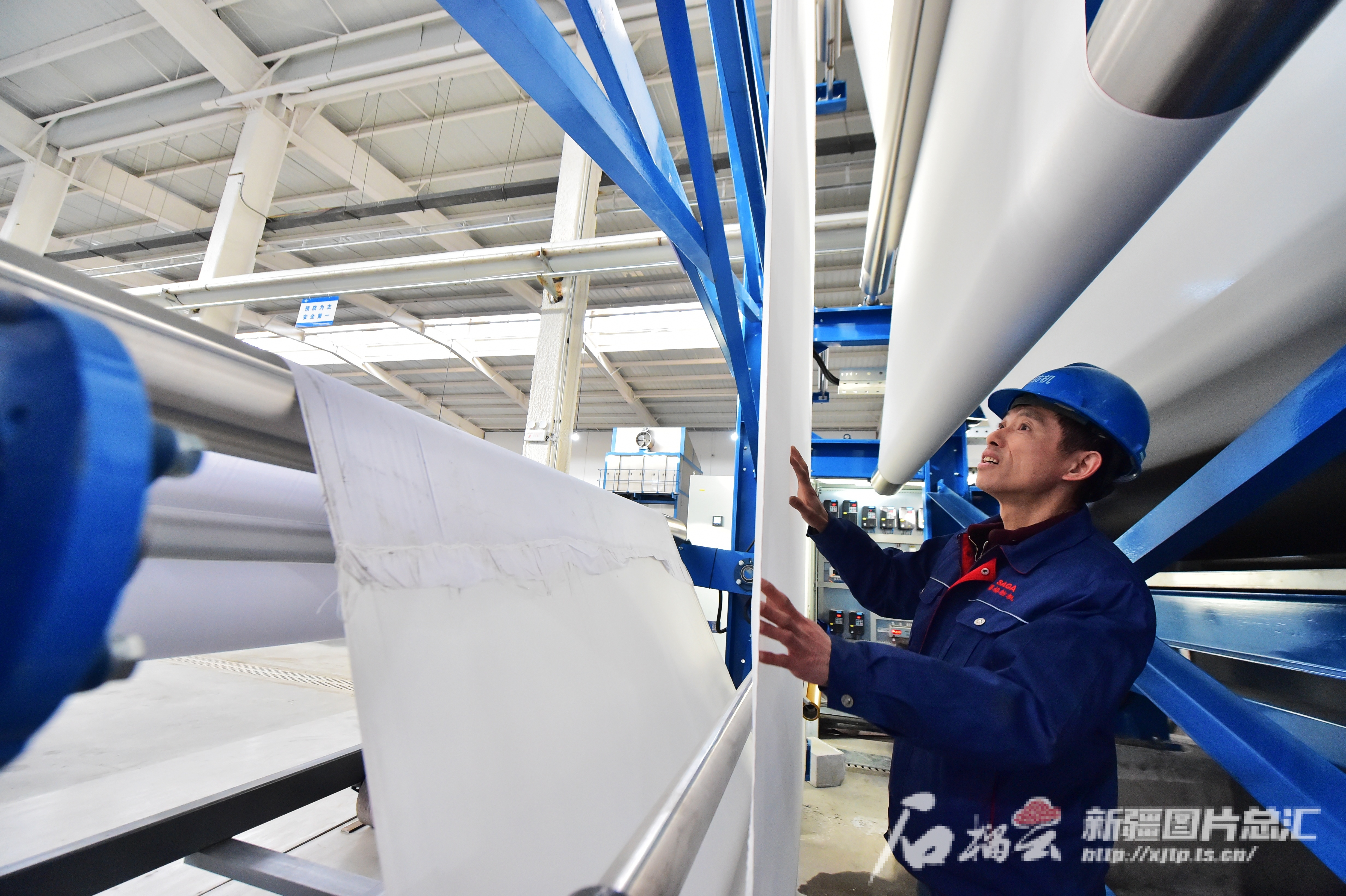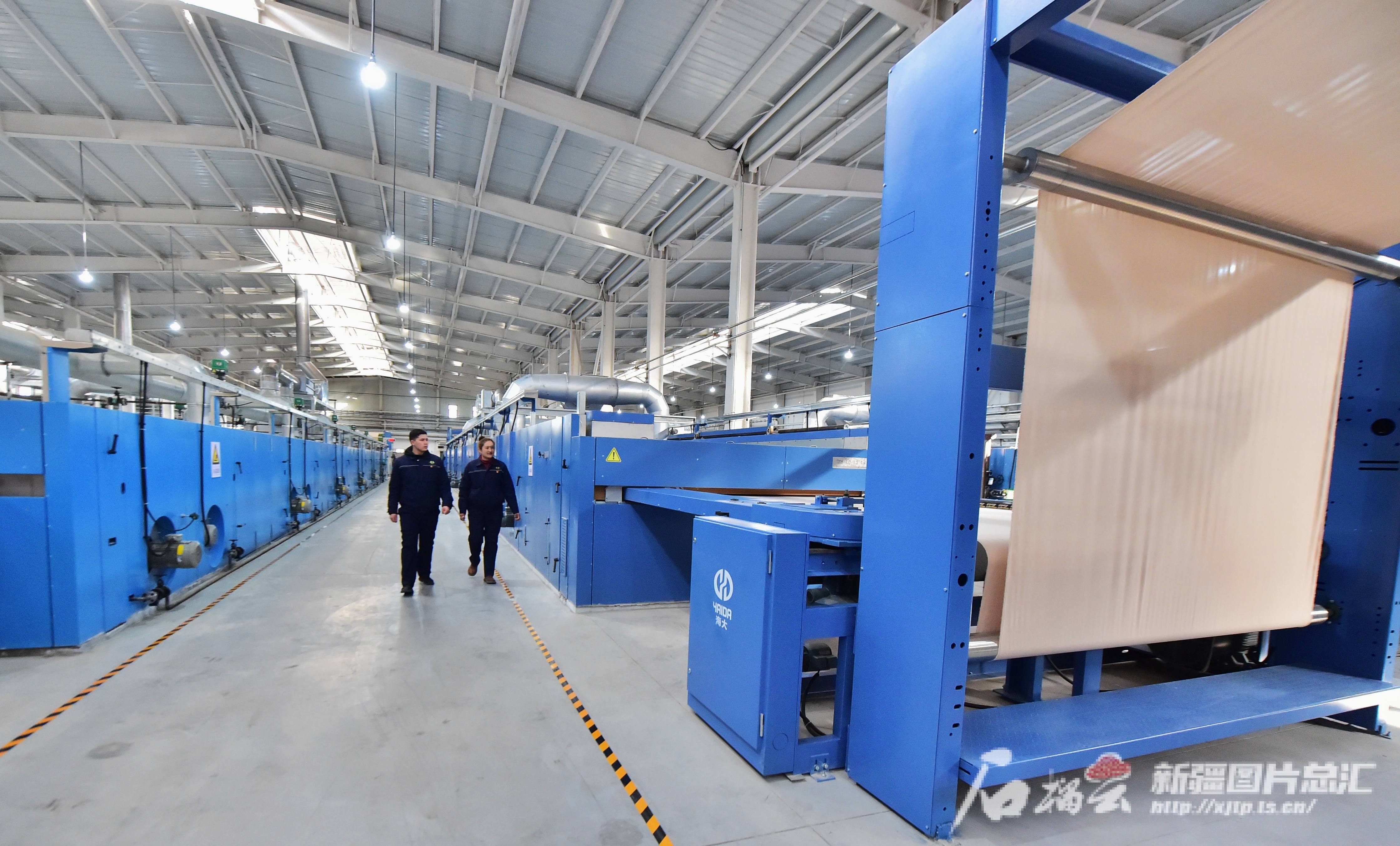 2月18日,新疆德利家纺印染科技有限公司员工在车间巡检。