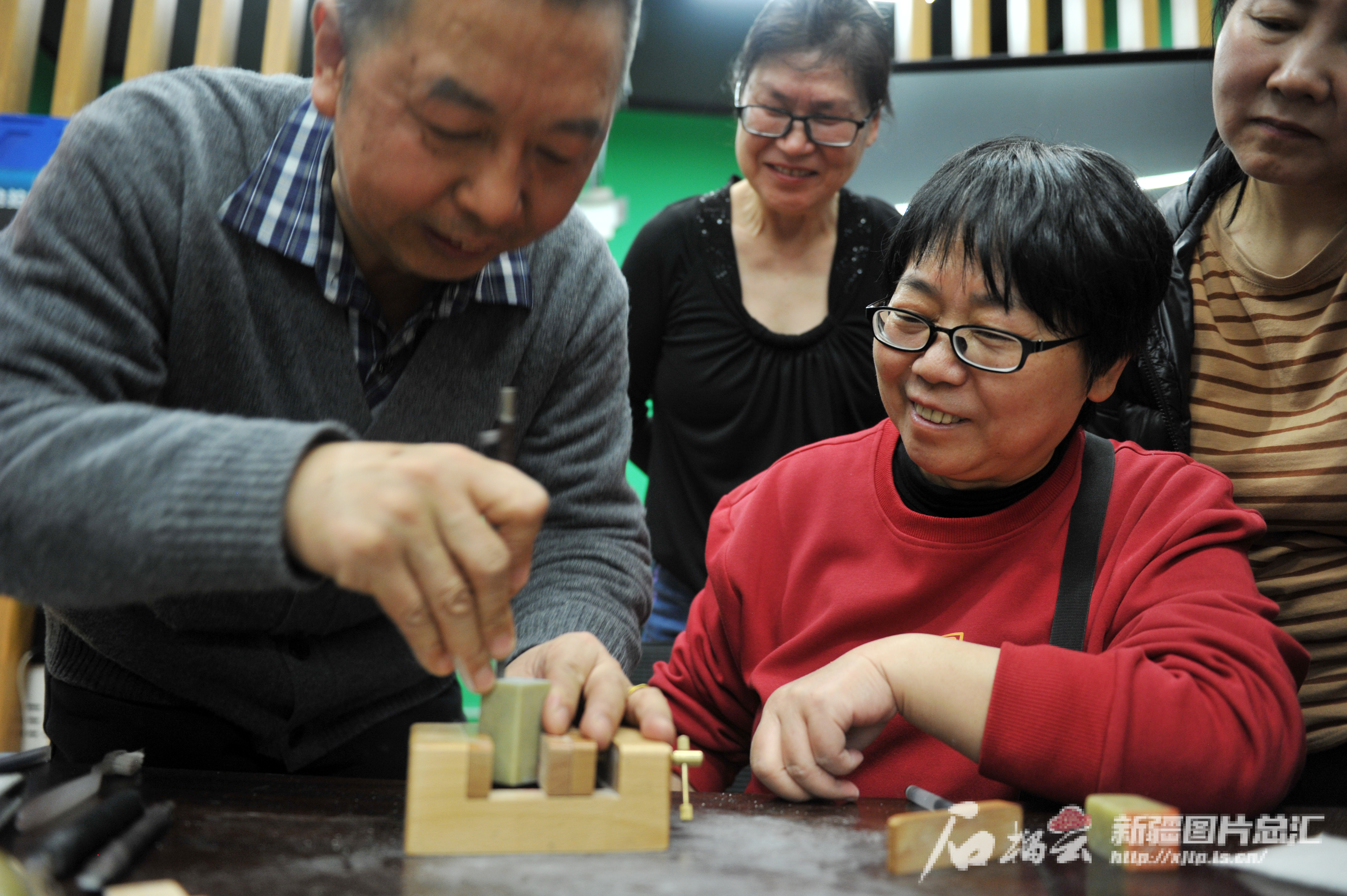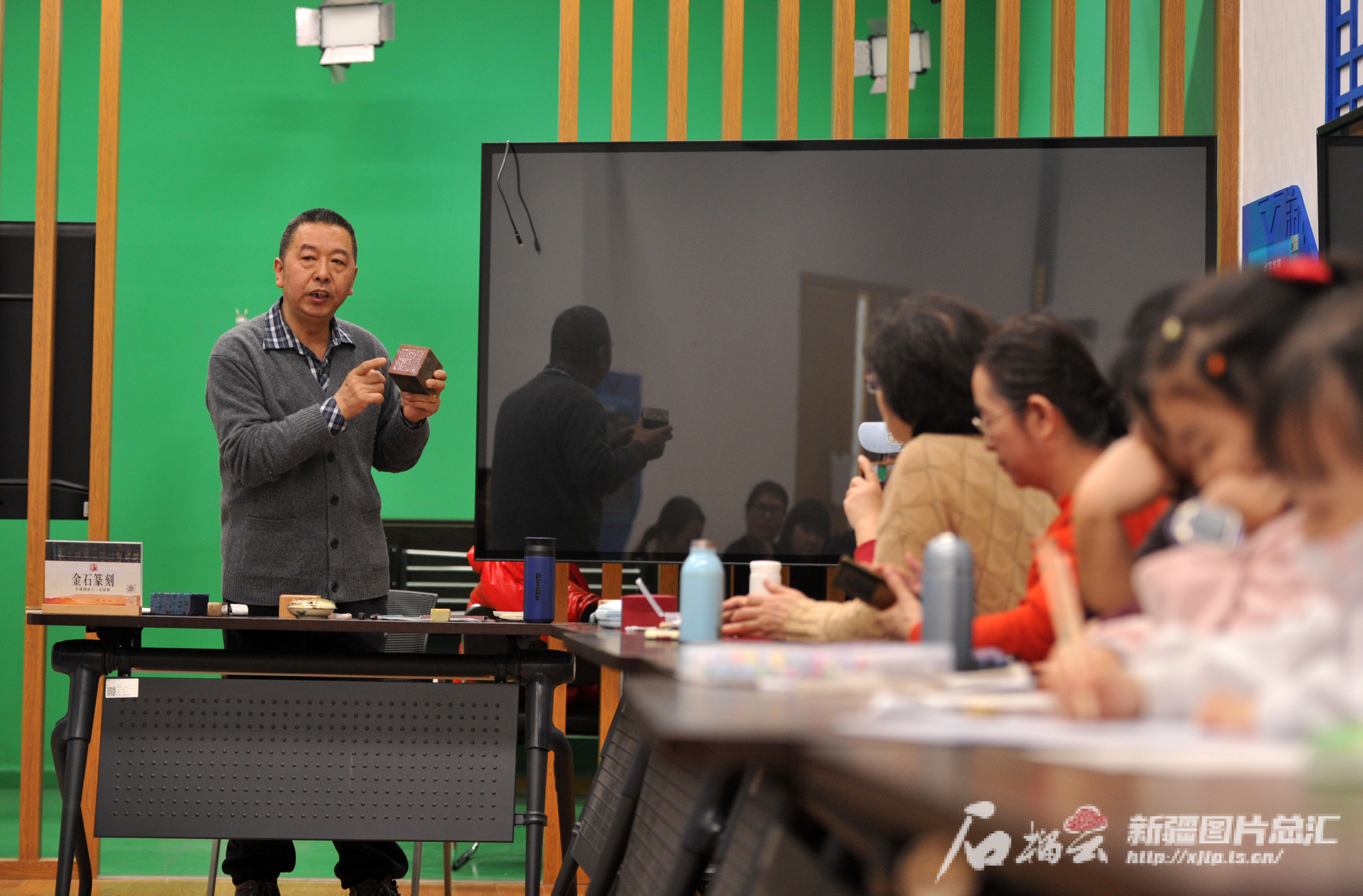2月24日,在自治区文化馆的篆刻课程上,王砚华为学员示范。