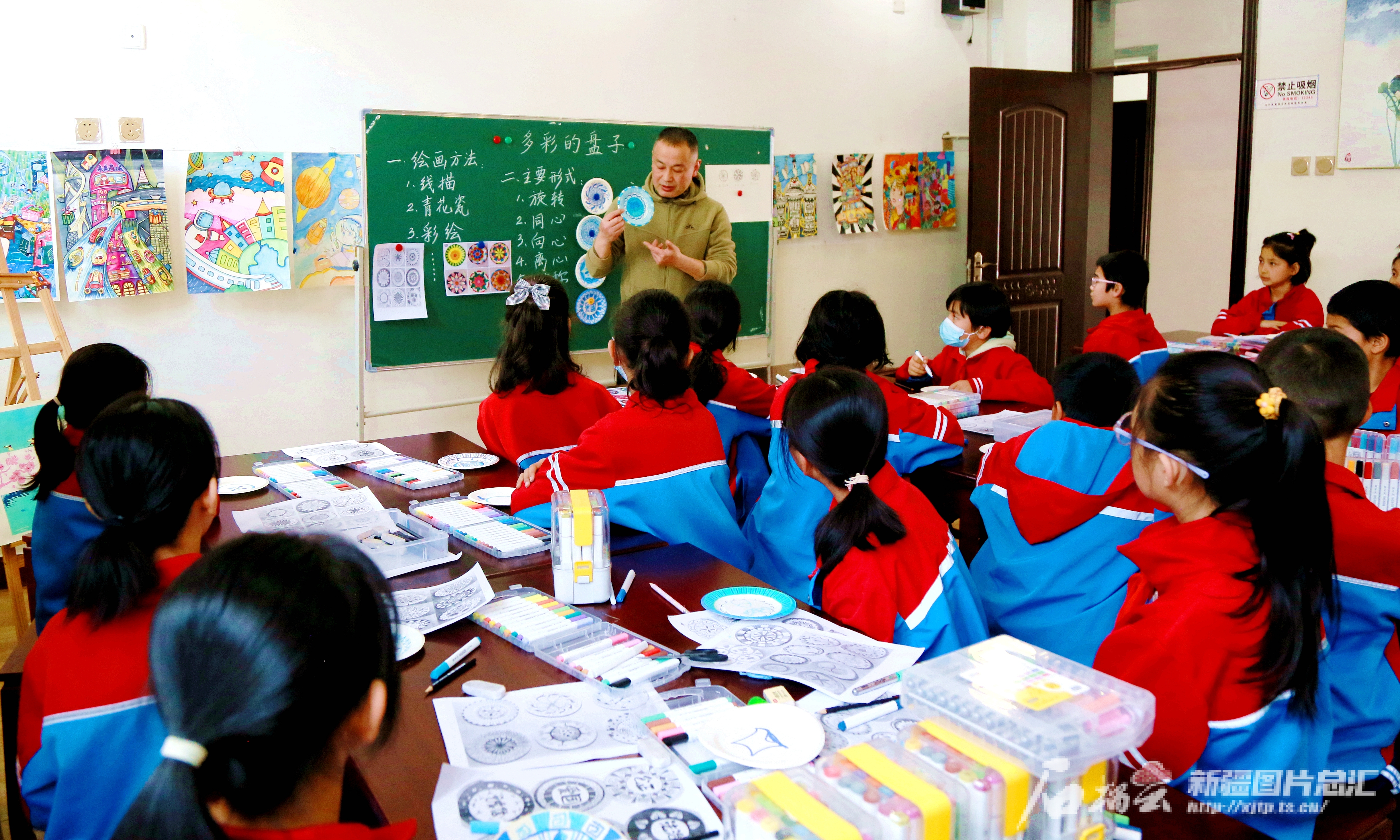 围棋教室里,小同学对坐、施礼、落子;美术教室中,老师教同学们如何用旋转、同心、向心等方式绘制一只可当礼物的多彩盘子。“石榴籽”青少年融情展馆里,小小讲解员先施一礼,继而娓娓道来。