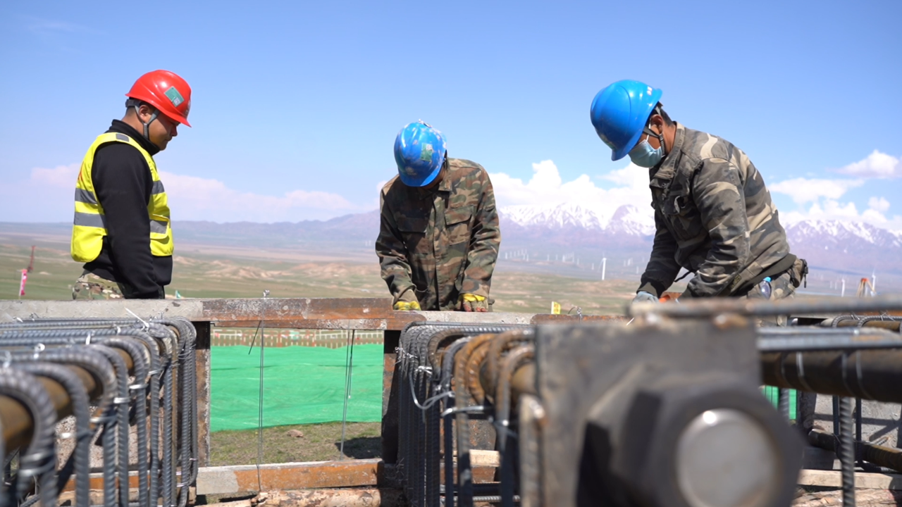 近日,走进位于塔城地区托里县铁厂沟镇的塔额750千伏线路工程施工现场,施工人员在进行塔基开挖及绑扎钢筋等基础施工作业。