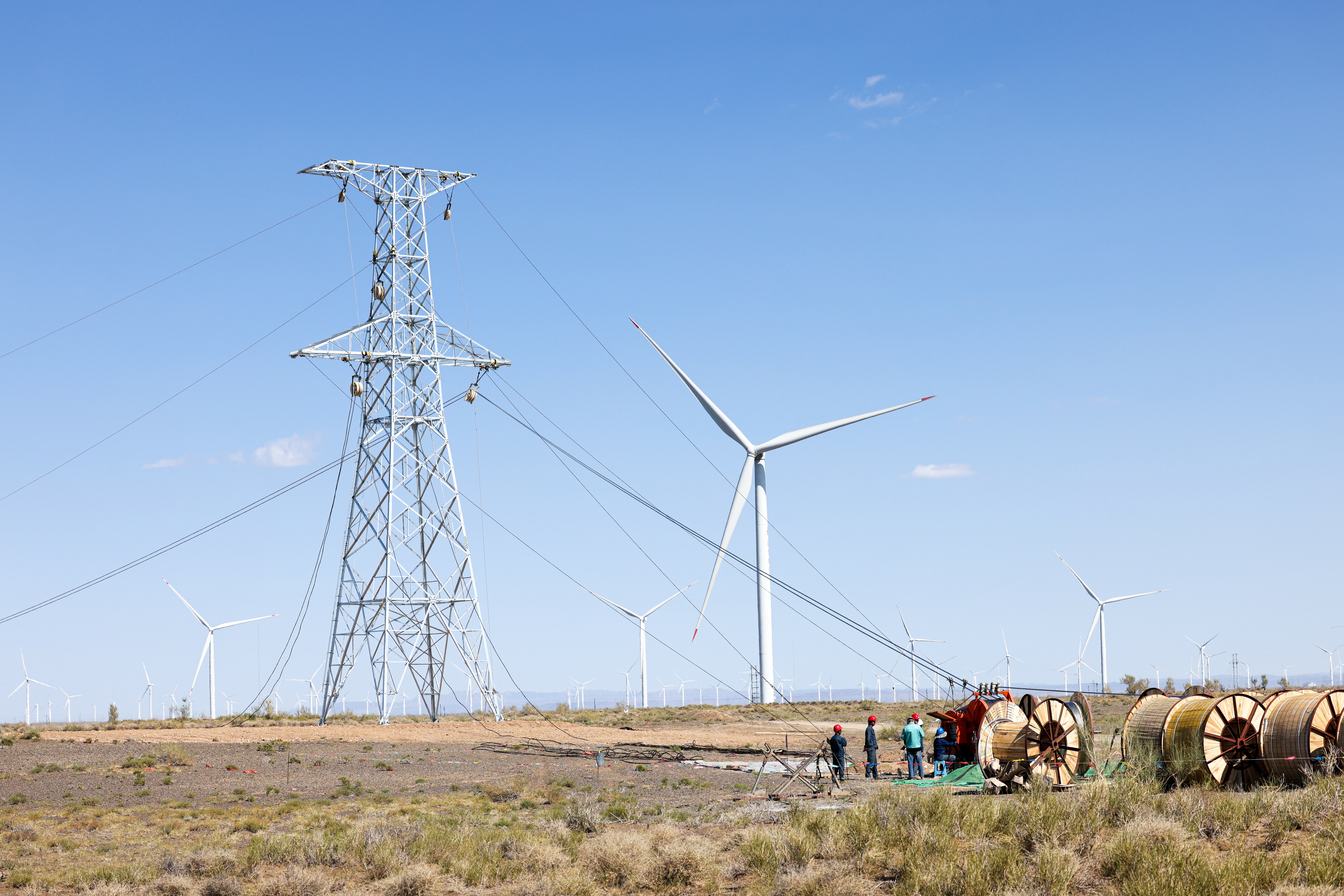 新华社北京8月21日电 《经济参考报》8月21日刊发记者陈涵旸采写的文章《“风光”无限好 新疆昌吉新能源建设加速推进》。文章称,近日,在新疆昌吉州木垒哈萨克自治县(以下简称“木垒县”)沙漠腹地的国网昌吉供电公司川月升压汇集站220千伏线路送出工程现场,电网建设工作者正在进行125号至150号铁塔导线展放工作。据了解,该工程建设线路长度73.8千米,建设铁塔200基,项目建成后将为区域新能源并网提供基础保障。
