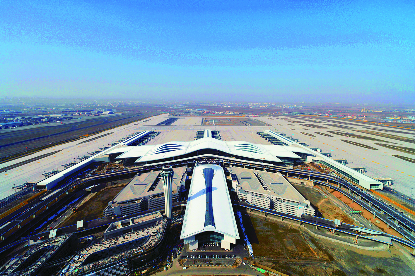 空中俯瞰乌鲁木齐天山国际机场北航站区。秦梅花/摄