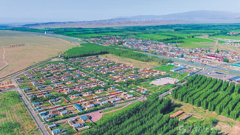俯瞰托里县多拉特乡吉也克村(9月3日无人机摄)。该村道路整洁、屋舍俨然、绿树成行,一幅绿美乡村新画卷正徐徐展开。