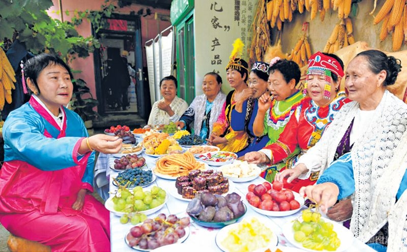 9月15日,阿勒泰市红墩镇萨亚铁热克村的“户儿家”文化大院里,各族村民品美食、拉家常,共话民族团结情。