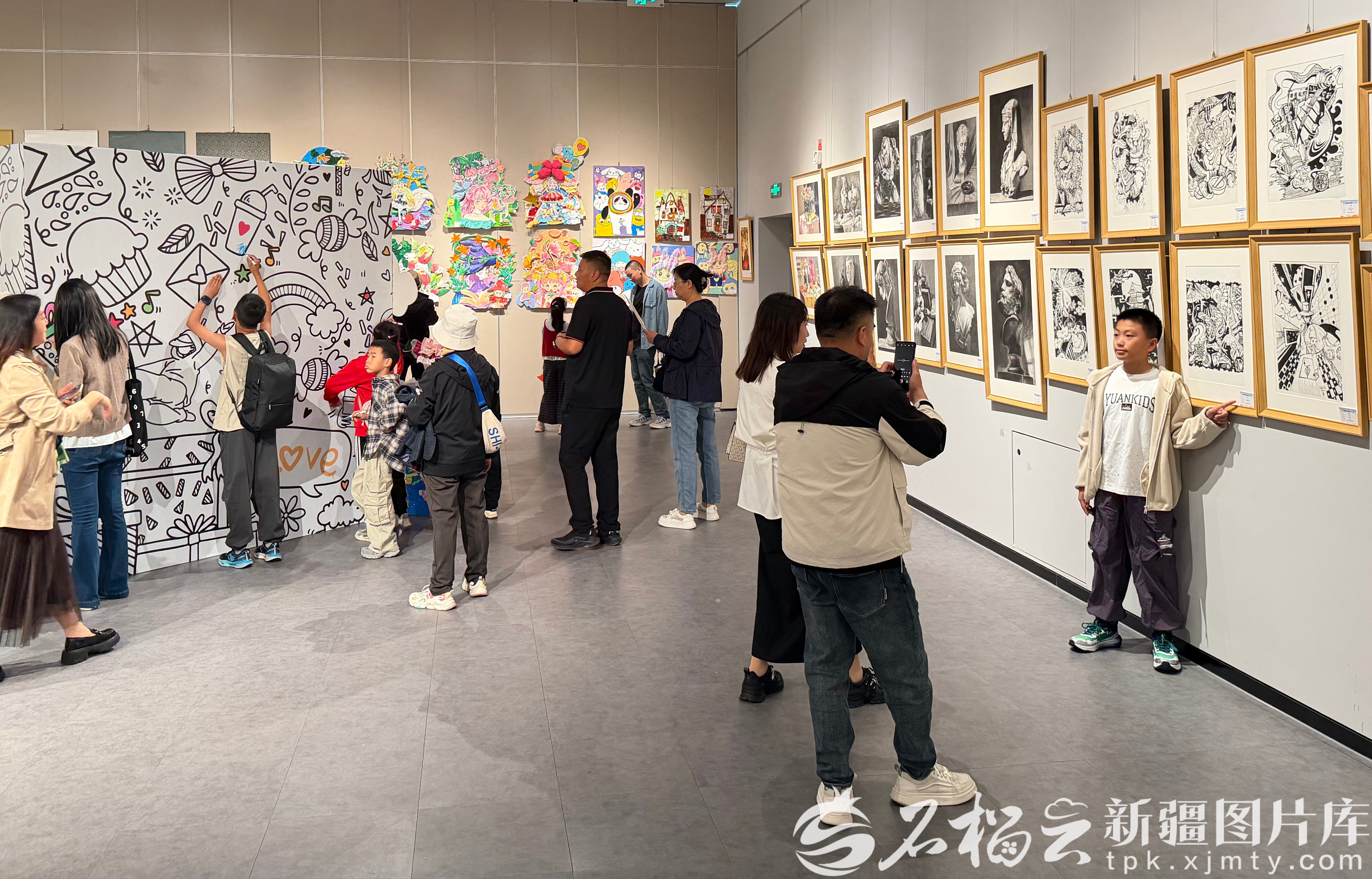 天山网-新疆日报讯(记者韩亮摄影报道)10月1日,新疆首届“童绘疆来”青少年书画展在乌鲁木齐市博物馆正式与公众见面,吸引了不少市民前来观赏。本次展览由新疆报业传媒(集团)有限公司主办,乌鲁木齐市博物馆承办,并得到乌鲁木齐市水磨沟区文化体育和旅游局(文物局)的指导。乌鲁木齐市、哈密市、昌吉回族自治州、塔城地区、喀什地区、博尔塔拉蒙古自治州、阿勒泰地区等10地州市青少年儿童参加了本次画展,他们年龄最小的仅3岁,最大的14岁。孩子们运用马克笔、水彩、丙烯、油画棒等多种绘画材料,描绘出新疆的壮丽山河与特色人文,展现出对家乡的深厚热爱。