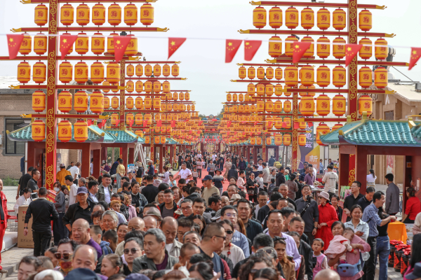 烤全牛香气弥漫,等待品尝的游客已排起长龙,成为活动现场一道别样的风景。卜登鹏 摄